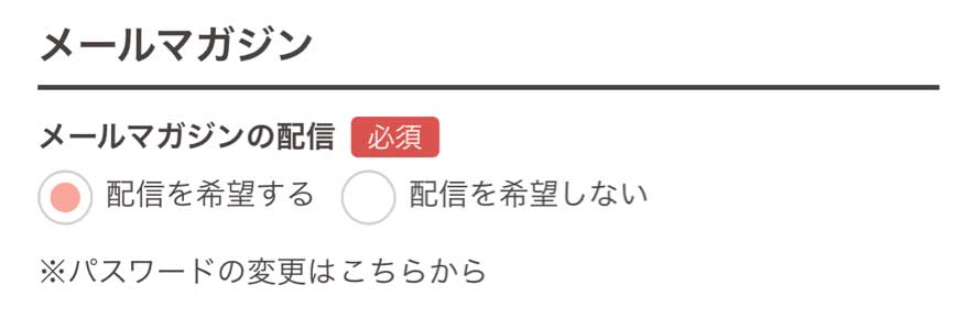 会員登録時、または「マイページ」の「会員情報変更」から、「メールマガジンの配信」の「配信を希望する」にチェックを入れて設定をお願いします。