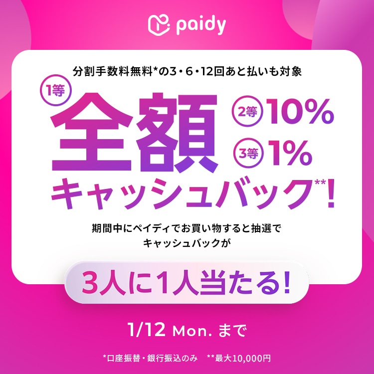 【1/12(月)まで】ペイディ抽選キャッシュバックキャンペーン
