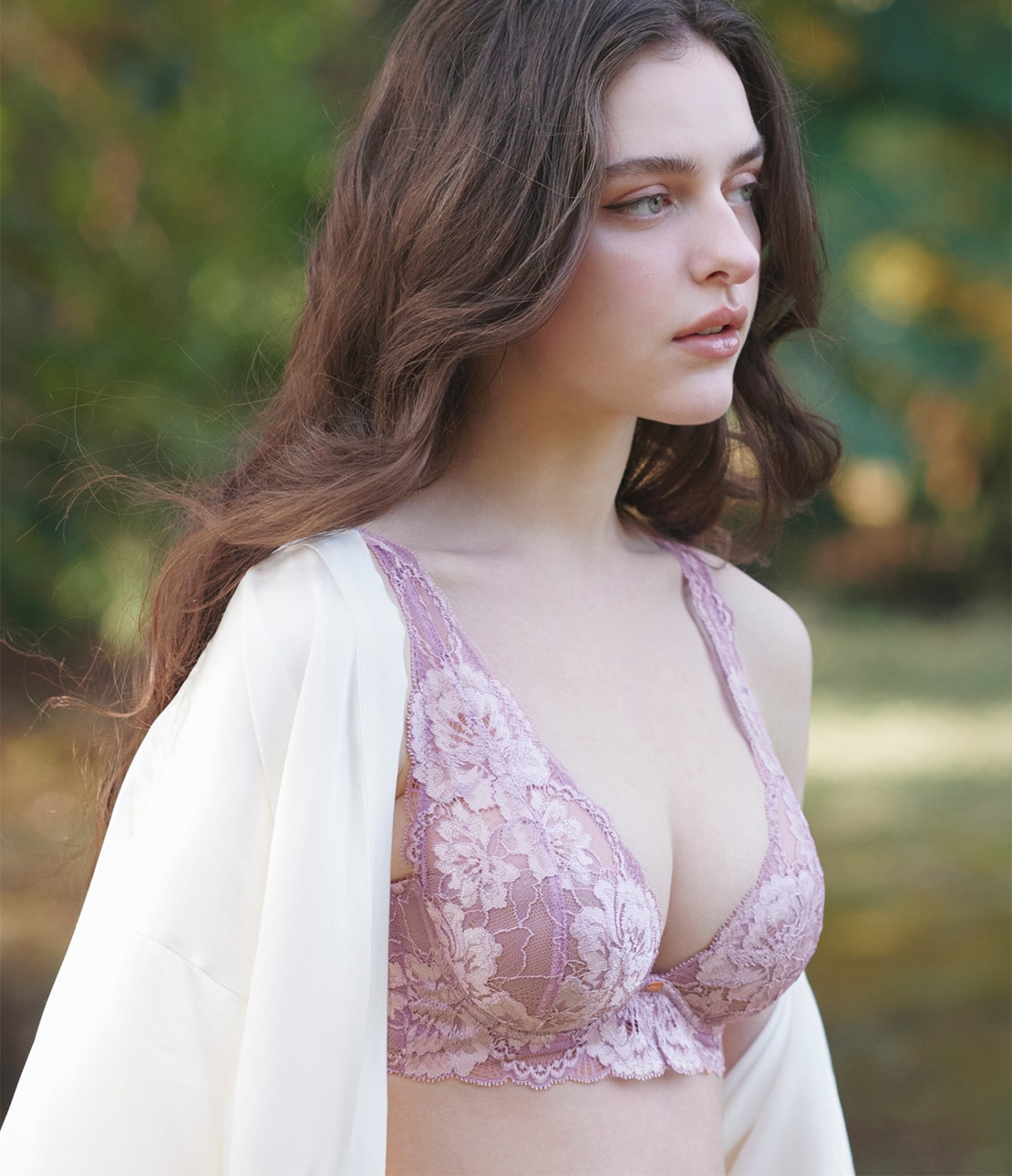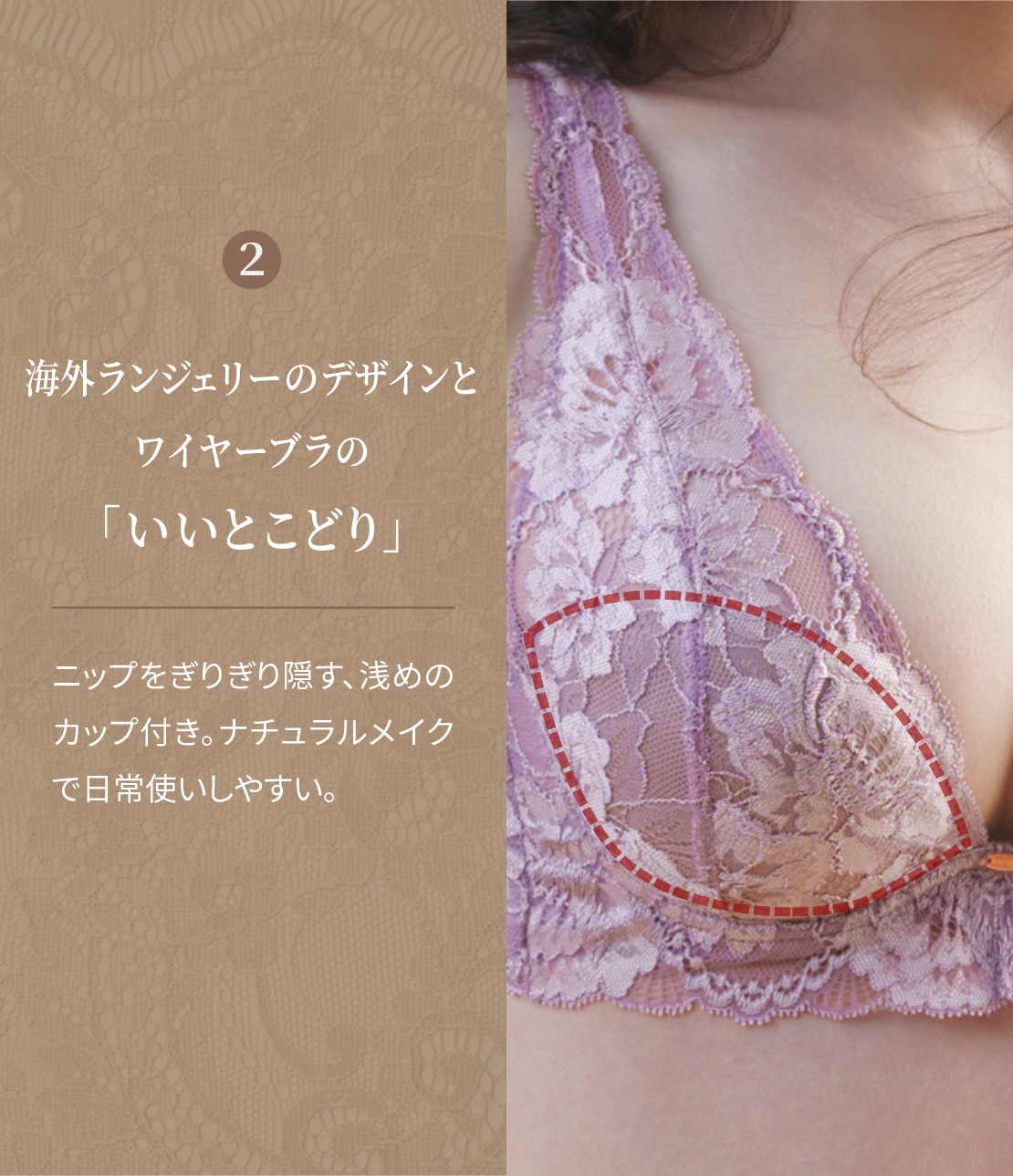 やさしい着け心地でナチュラルにバストメイク。インポート風総レースのフルカップ。