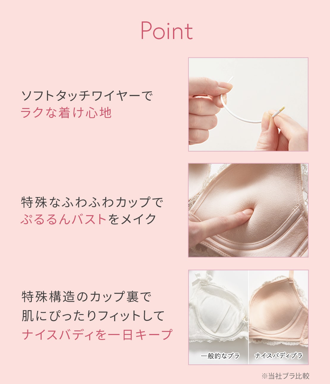 ・とても柔らかなソフトタッチワイヤーを外側に配置。まるでノンワイヤーのような軽いフィット感。