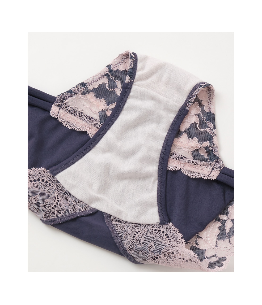 ・脚ぐりは幅広めのストレッチレースに切り替え、やさしい肌あたり。