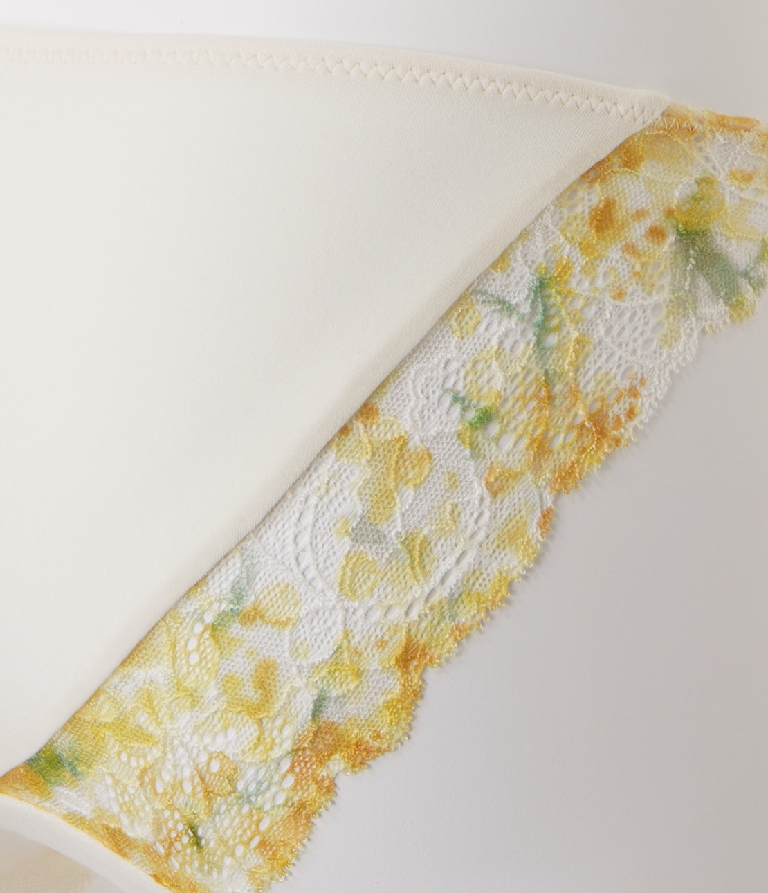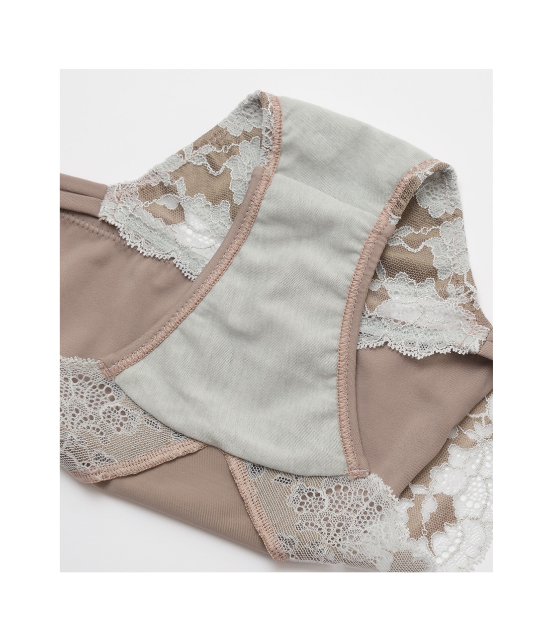 ・脚ぐりは幅広めのストレッチレースに切り替え、やさしい肌あたり。
