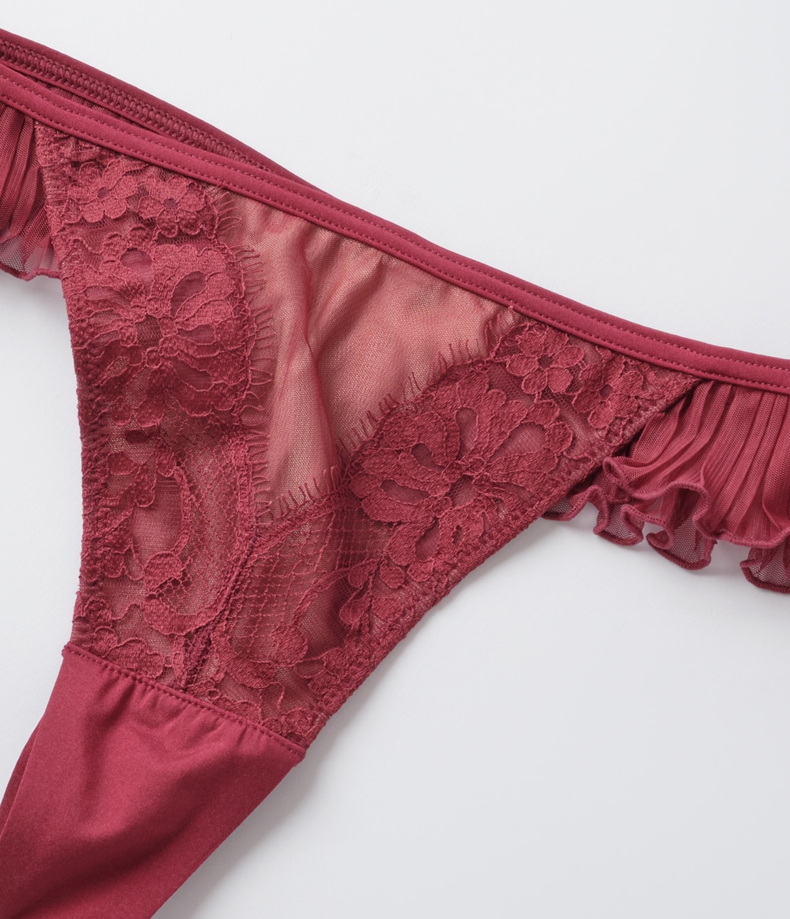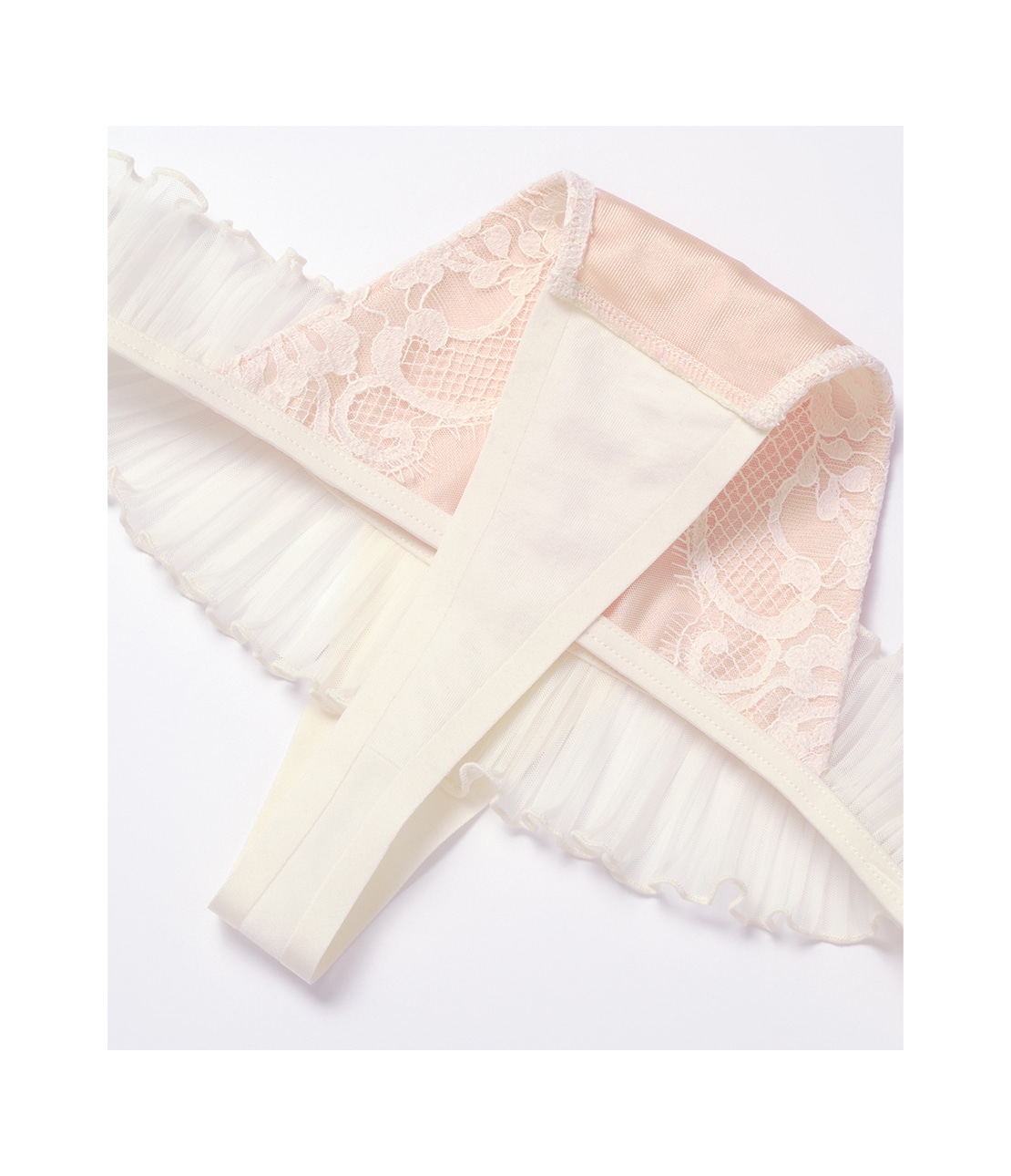 ・中央はメッシュ、脚ぐりはアイラッシュリバーレース。ベージュ系の裏打ち付きで透けにくい。
