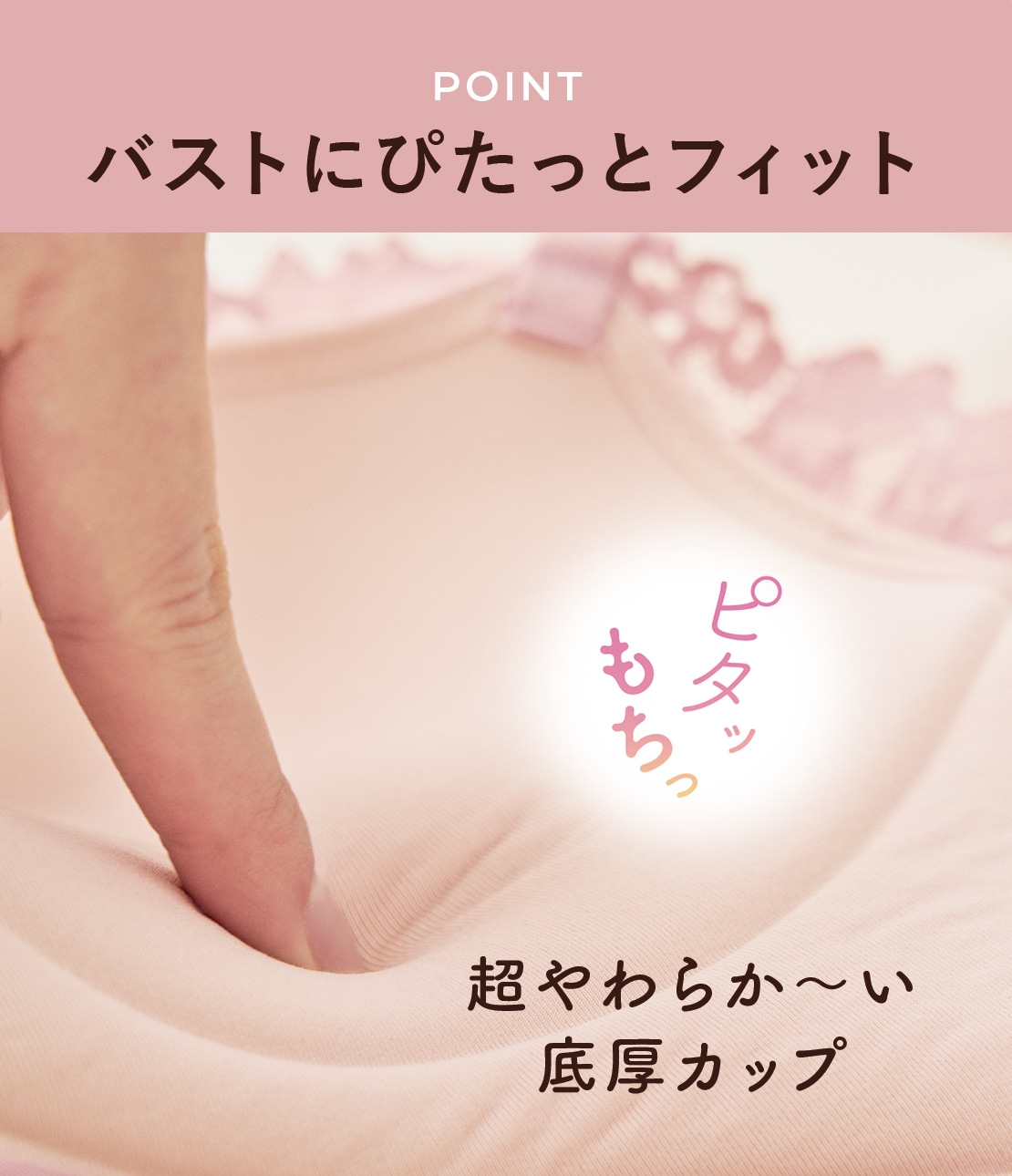・もちっと柔らか~い触感のパッドが、バストを包み込むようにフィット。気持ちいい着け心地が大好評!