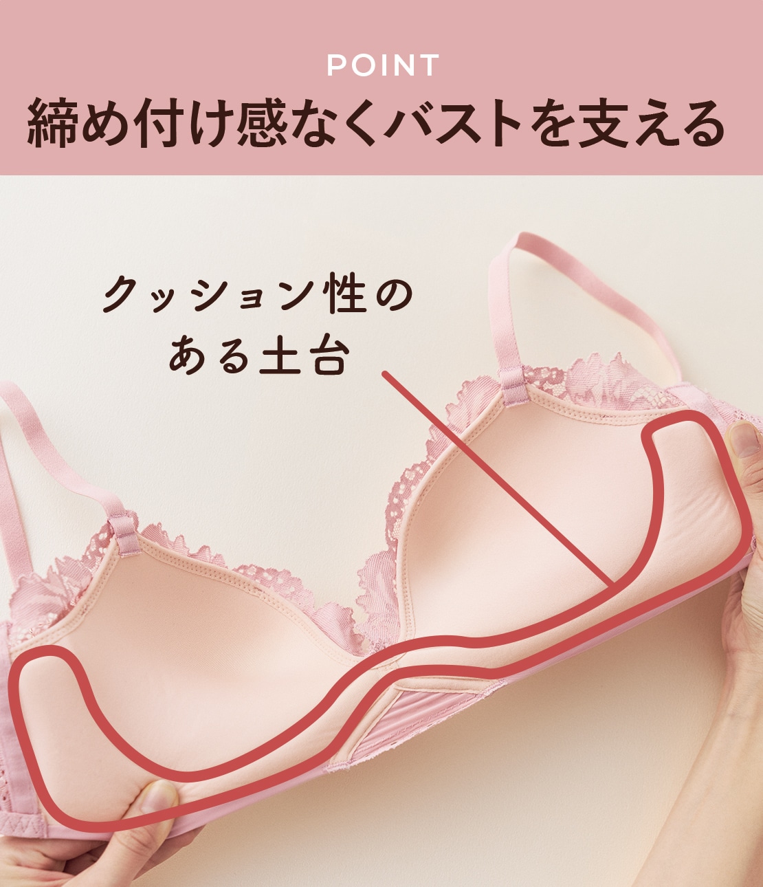 ・ノンワイヤーでストレスのない着け心地ながら、高さのあるバストをメイク。