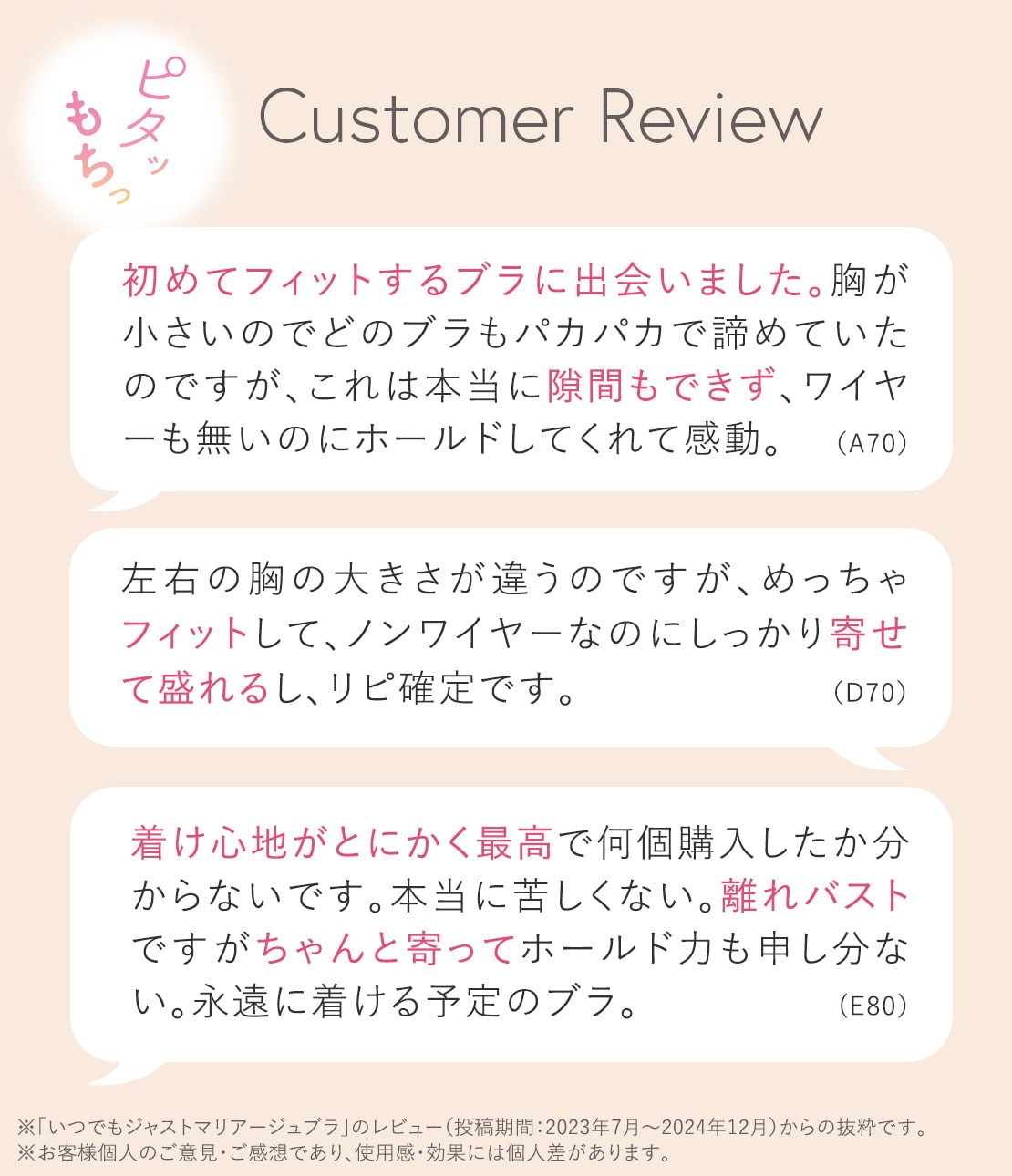 【左右差・張り・浮きにもジャストフィット -いつでもジャストブラ- 】