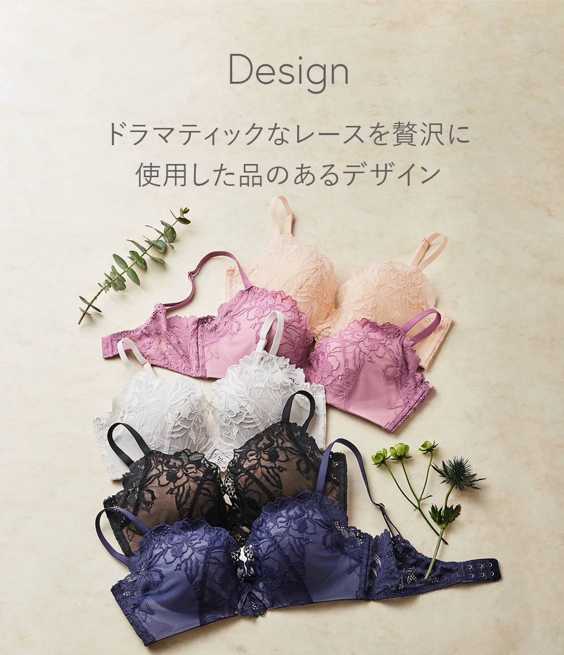 【ノンワイヤー】左右差・浮き・張りに対応。柔らかフィットの美麗レースブラ。