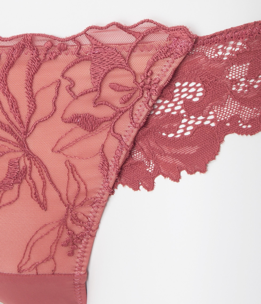 【Tバック】サイドのレースがソフトに伸びて、快適なはき心地。