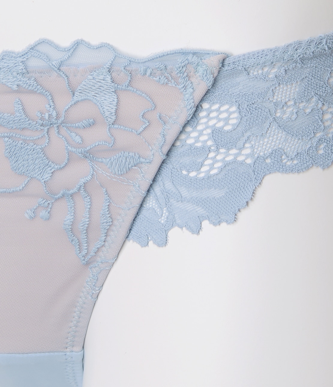 ・両サイドは「のびのびレース」1枚で透け感あり。