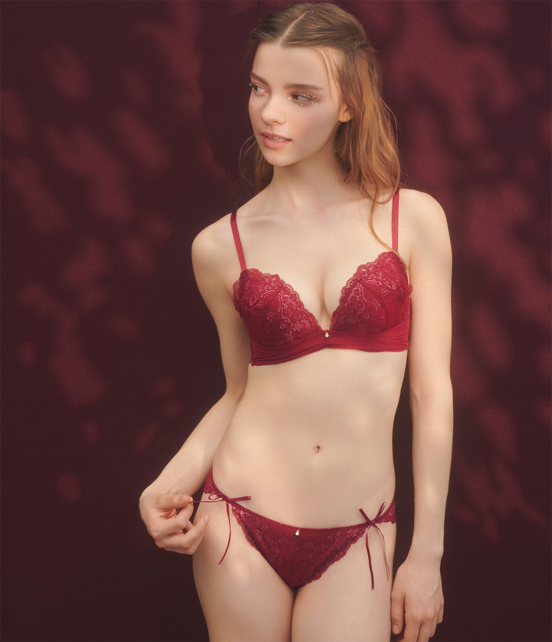 もりこれフラワーエンブロイダリーレースブラセットP(A75 レッド)¥3,900 (本体価格 ¥3,546)