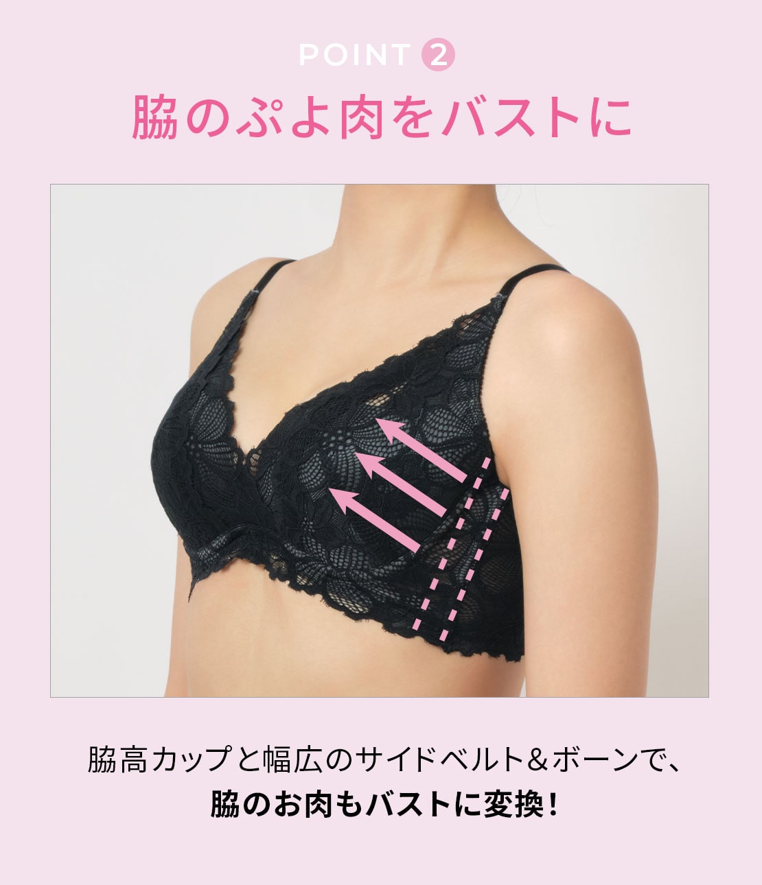 ・ブラを着けた時に気になる、脇のぷよ肉をしっかりサポート。