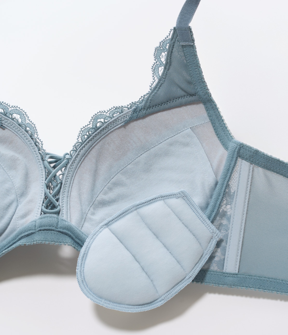 ・カップ間を伸縮性のあるテープで編み上げてトレンド感あるルックス