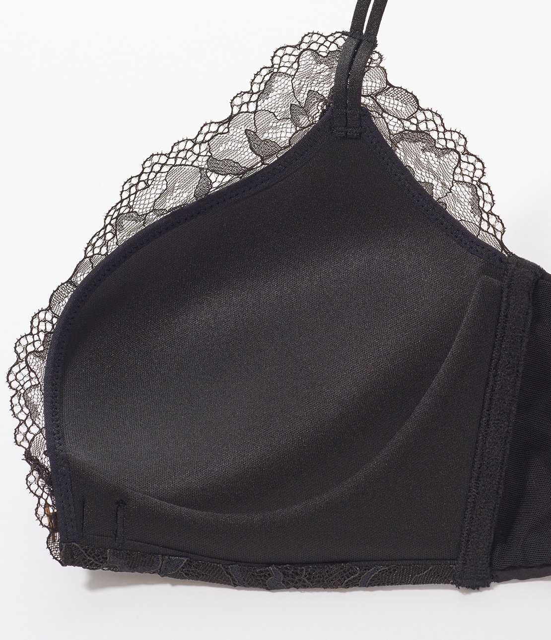 ・カップ周りにクッション性のあるパネル付きで、着け心地が柔らかく、ノンワイヤーでもフィッティングが安定。