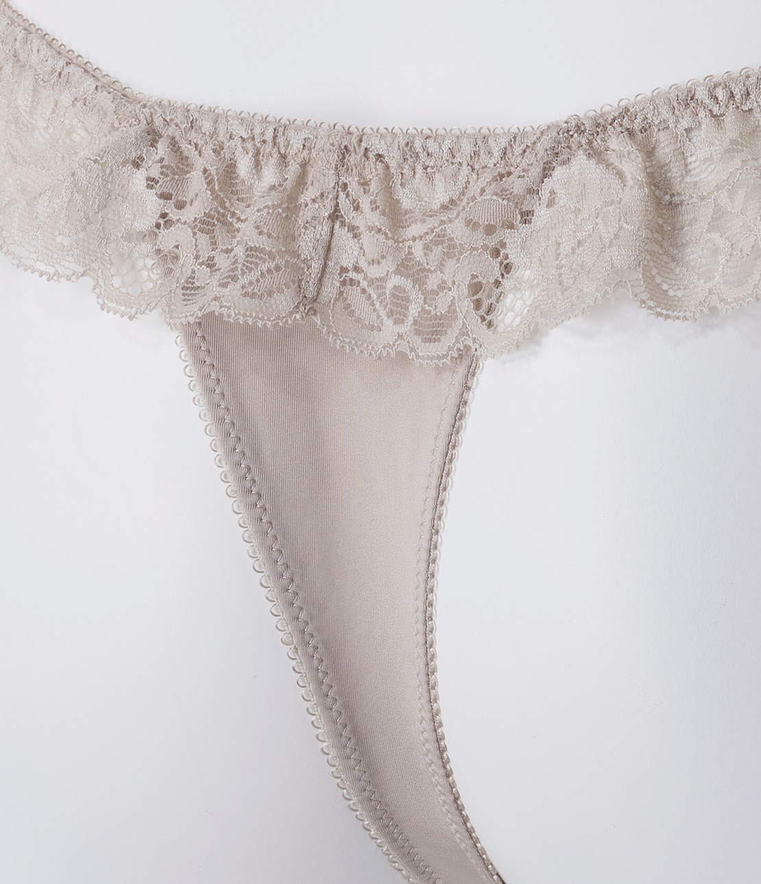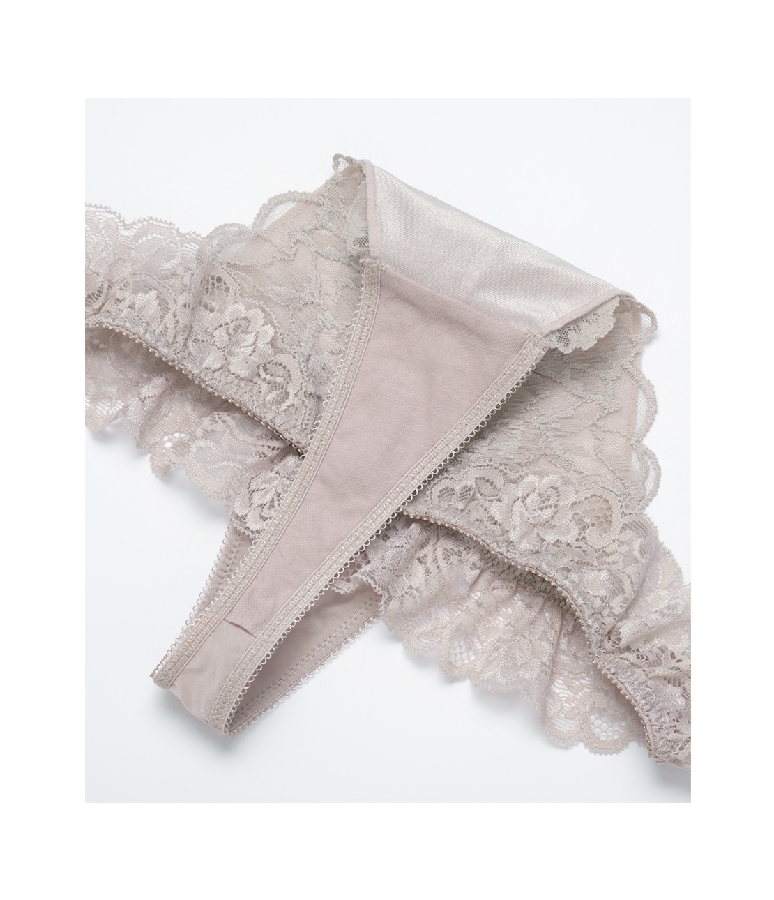 ・両サイドからバックにかけて、ストレッチレースのフリルがひらりと踊ってキュート。
