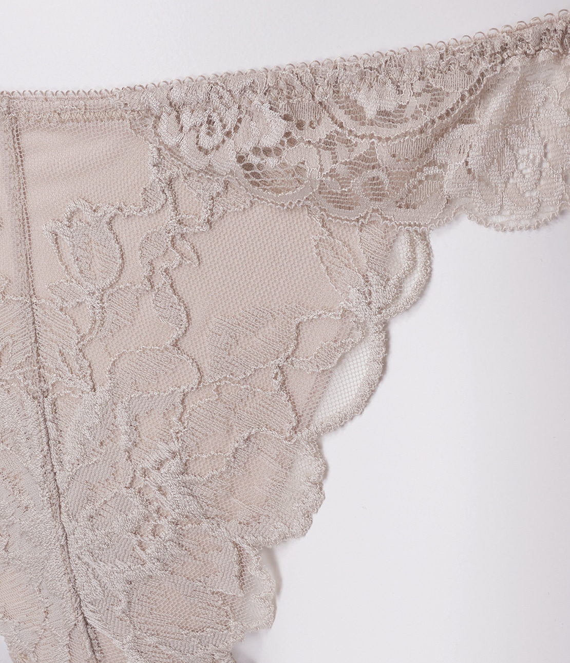 ・華やかな柄行きのレースに薄手の生地を裏打ちして透けを軽減。