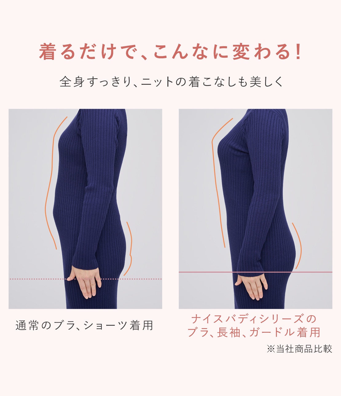 ・「ナイスバディブラ」、「ナイスバディファーストガードル」と合わせれば、よりトータルなボディメイクが可能。