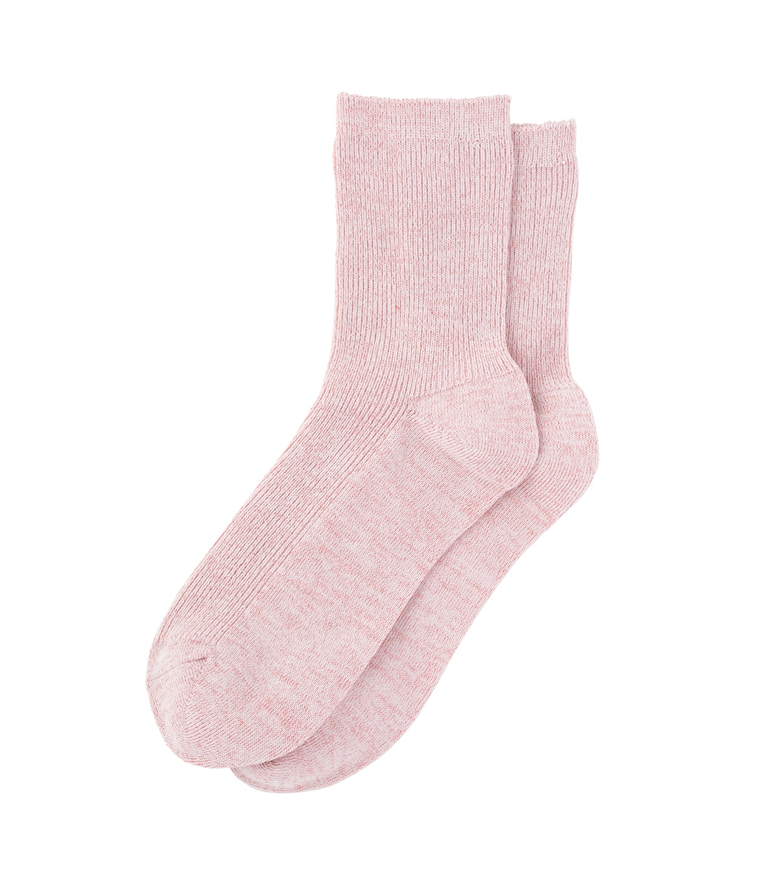 1足440円、よりどり3足で1100円※のプチプラ!ちょっとしたギフトや、通販での送料対策にもおすすめのソックス。「ラメソックス」はポリエステル主体のリブ編みで、編み糸にそれぞれ配色のラメ入り。服に合わせやすい、さりげない輝きです。足首より長めの丈で、伸ばして履いても、少したわませても。