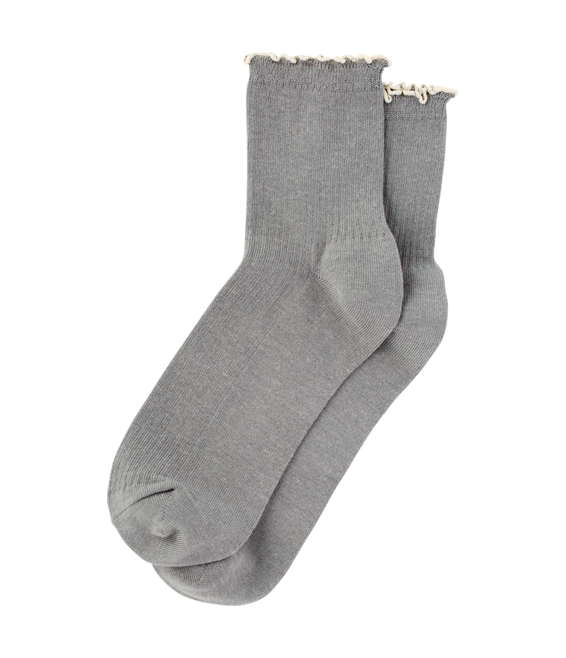 プチプラだから気軽なギフト・送料対策にも。配色のふちどりが効いた「フリルソックス」。