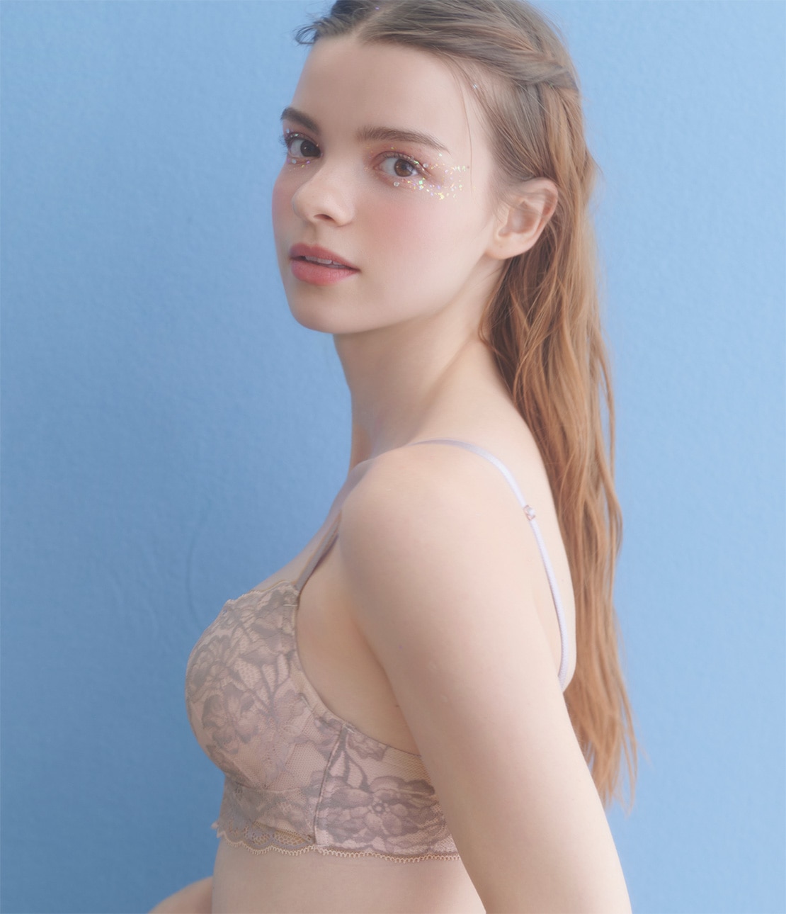 A、B、C65・70・75、D65・70、E65:ふかふかしたわたを内蔵した下厚カップ。トップ位置を高くキープし、ボリュームUP。