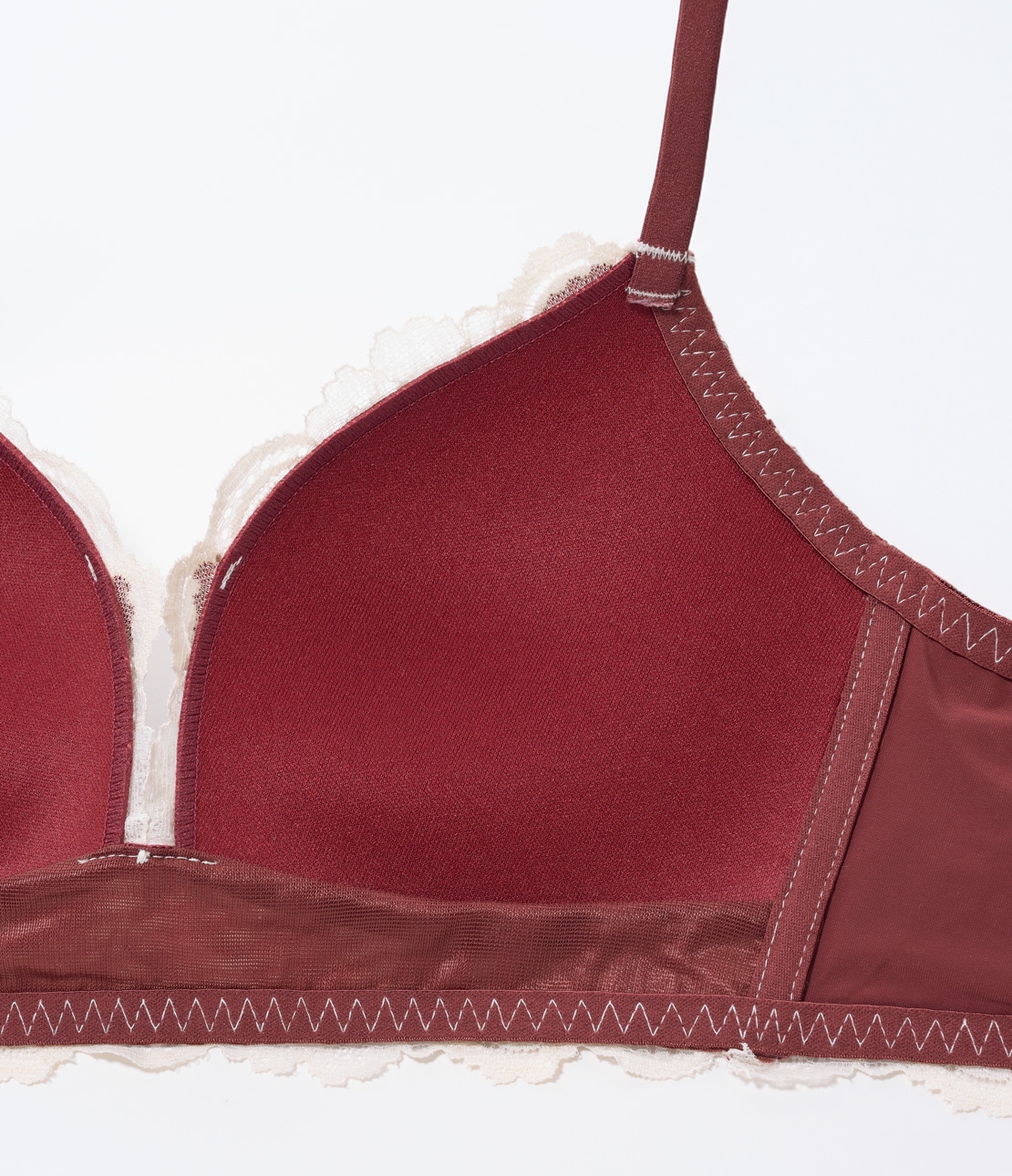 ・カップ下にバストを支えるパネル付きの設計。ノンワイヤーでもフィッティングが安定。