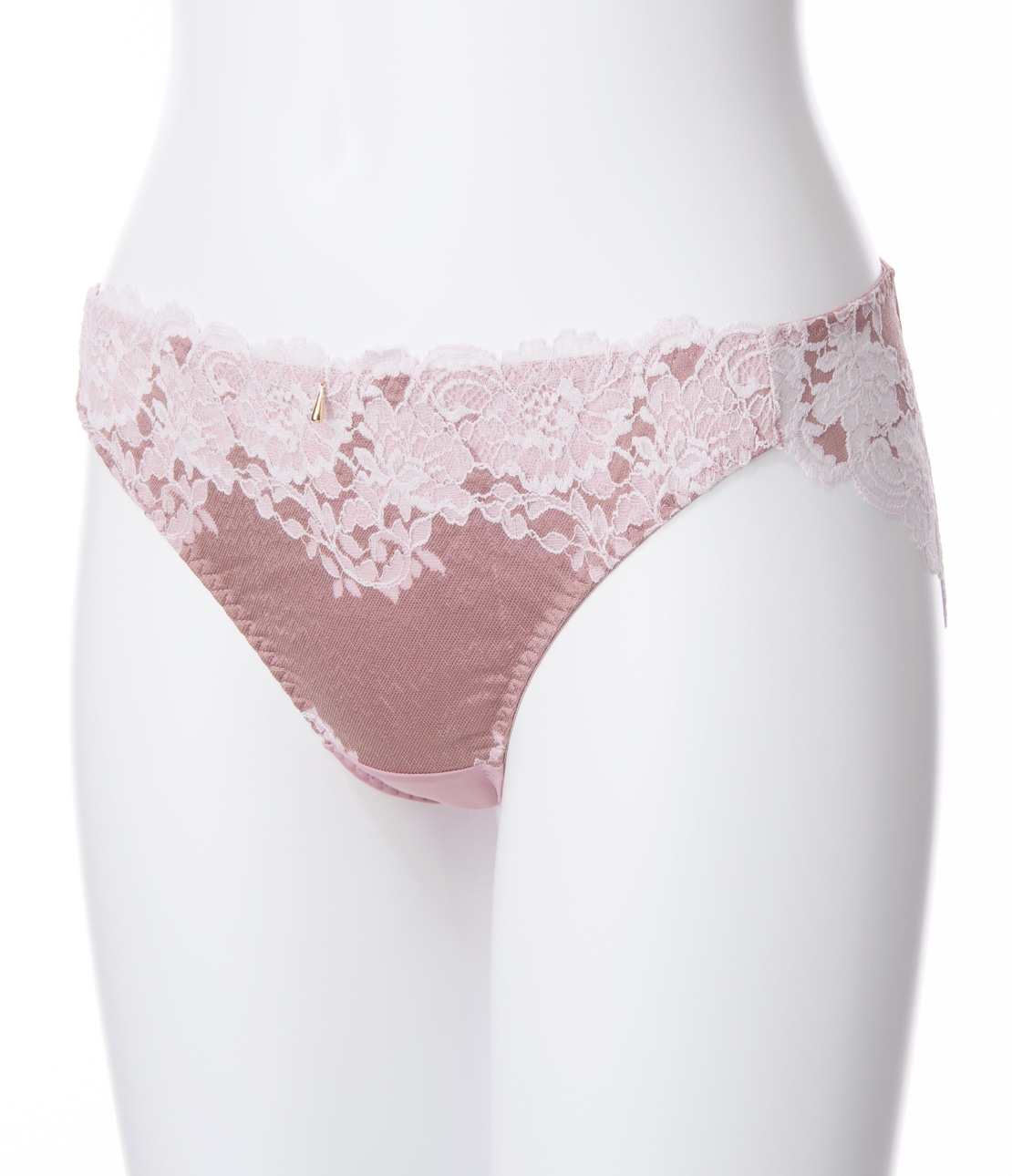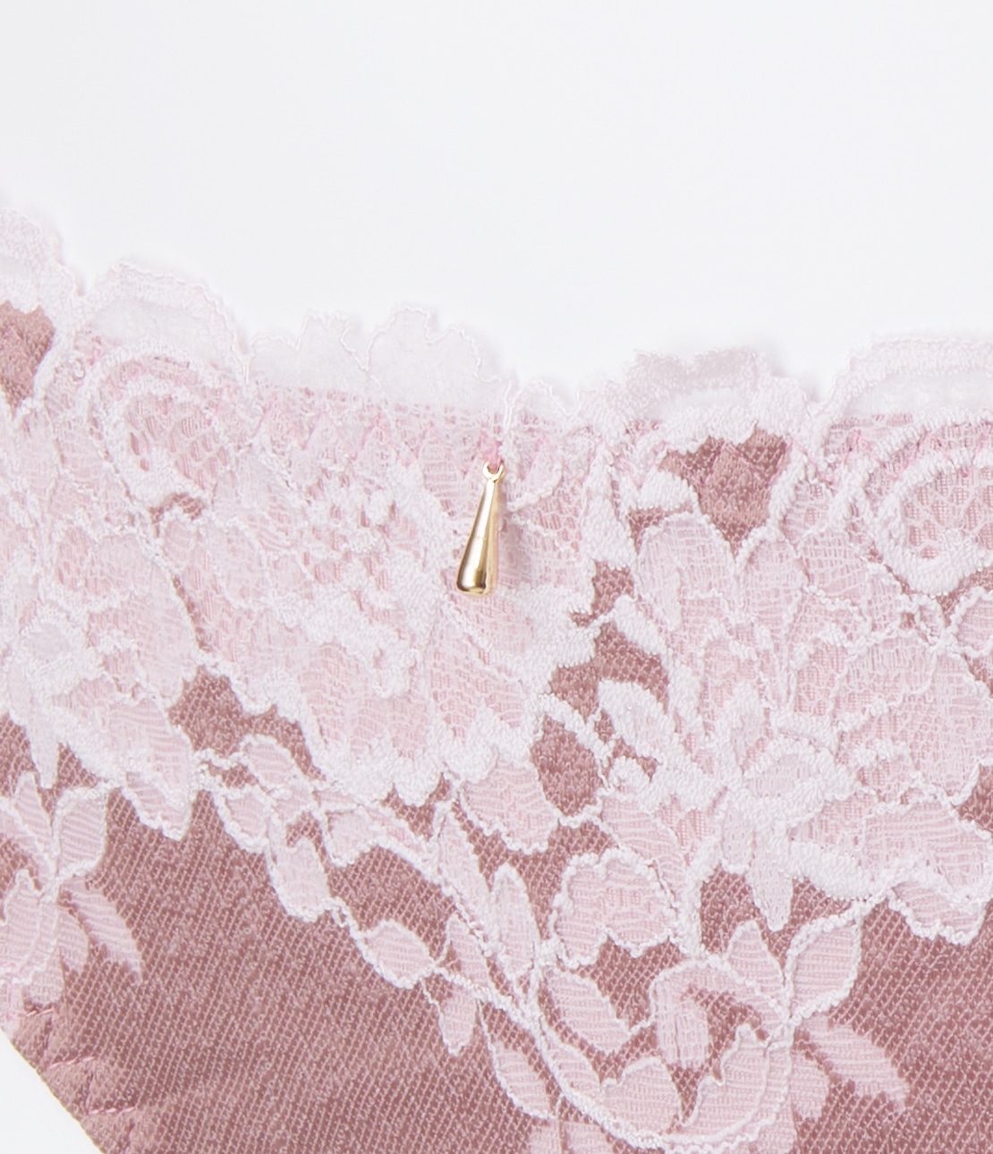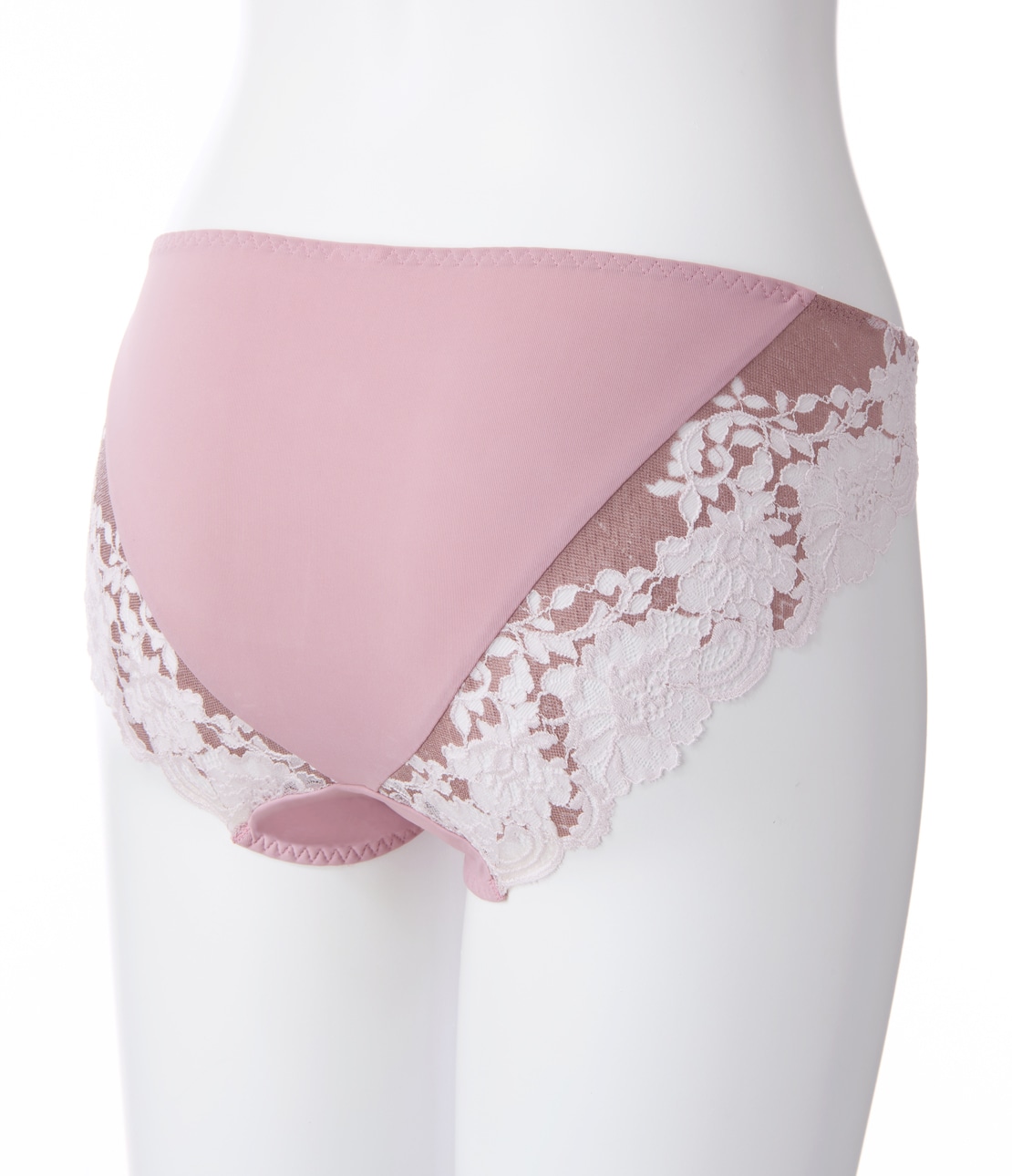 ・ふちは繊細な花柄、ベースは光沢ある生地調と、異なる質感を組み合わせた2色染めのストレッチレース。薄手生地を裏打ちして透けにくい。