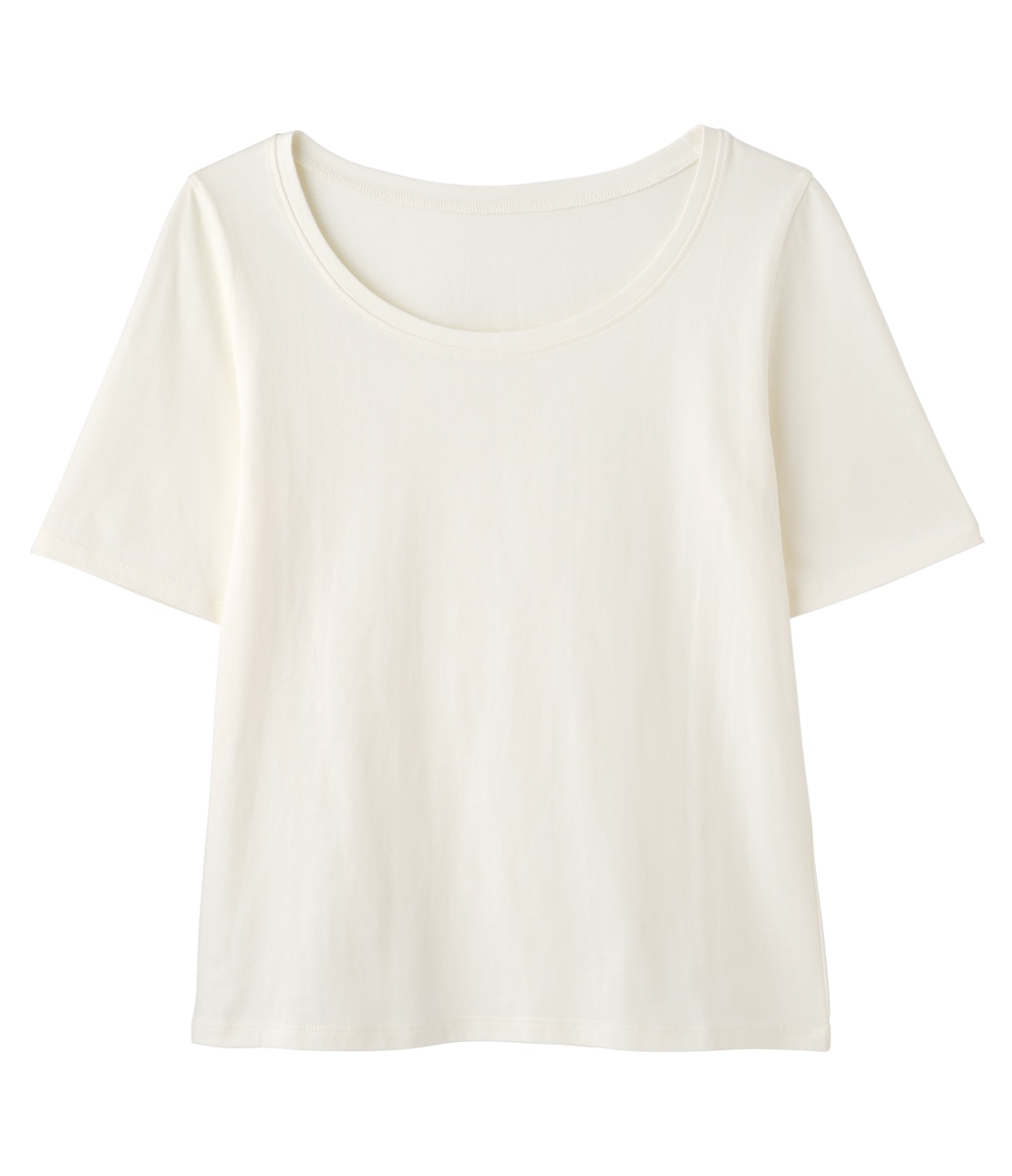 【コットン100%】デコルテをきれいに見せる、広めネックラインの半袖Tシャツ。