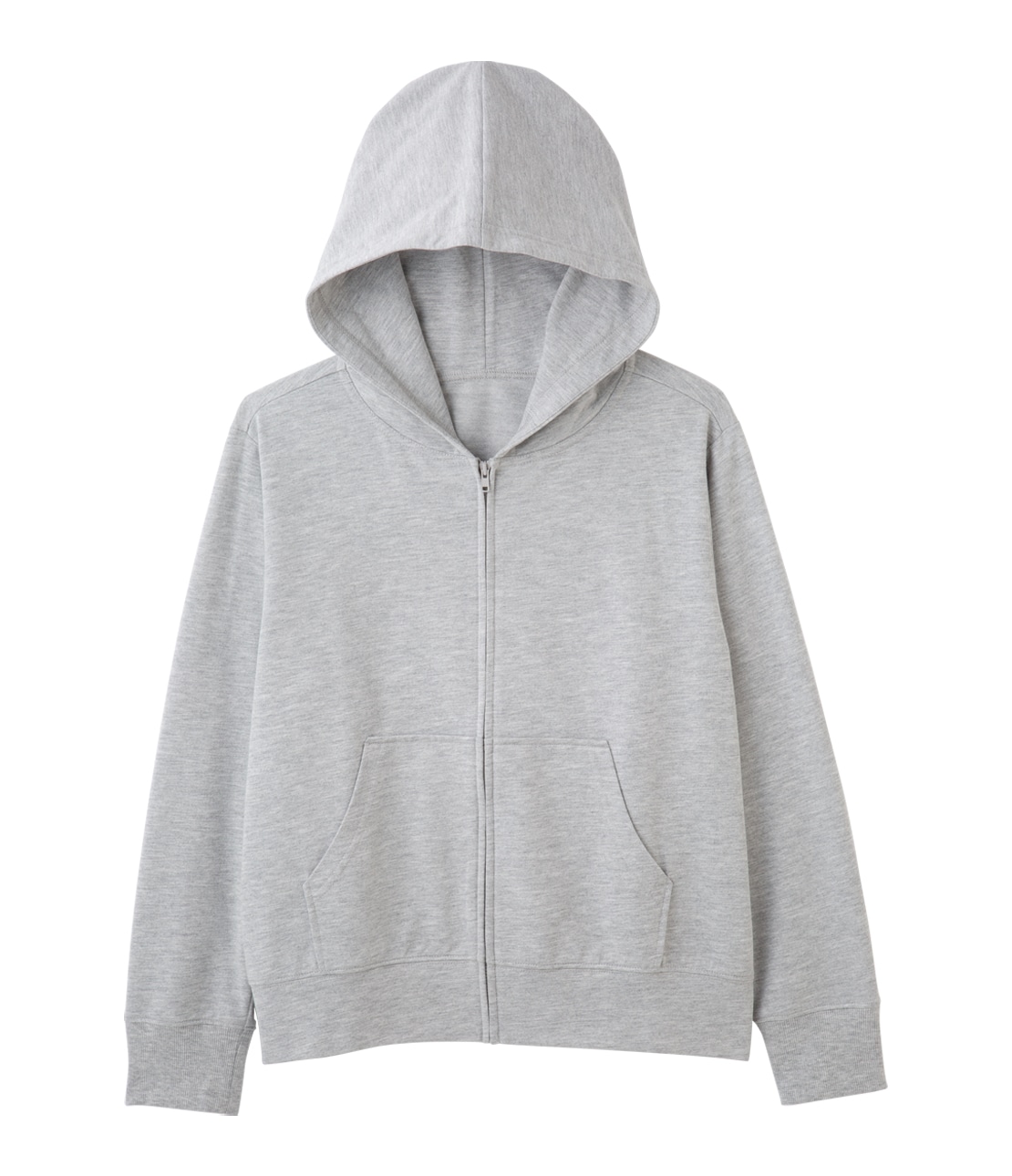 【コットン混】内側パイルで肌ざわり柔らか。通年使える薄手のスウェットフーディ。