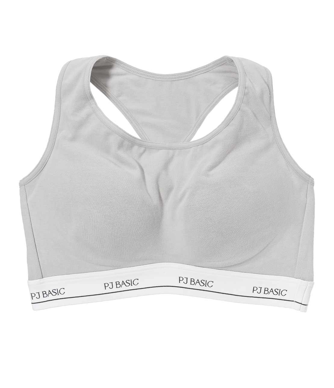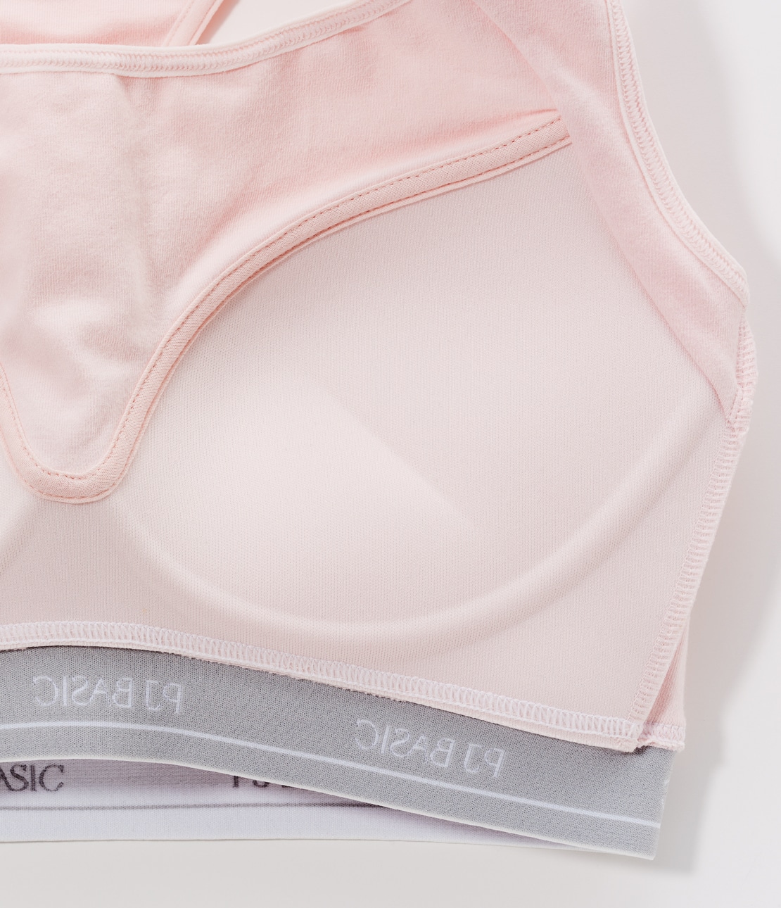 ・ロゴ入りゴムがデザインポイントの、アクティブなノンワイヤーブラ。