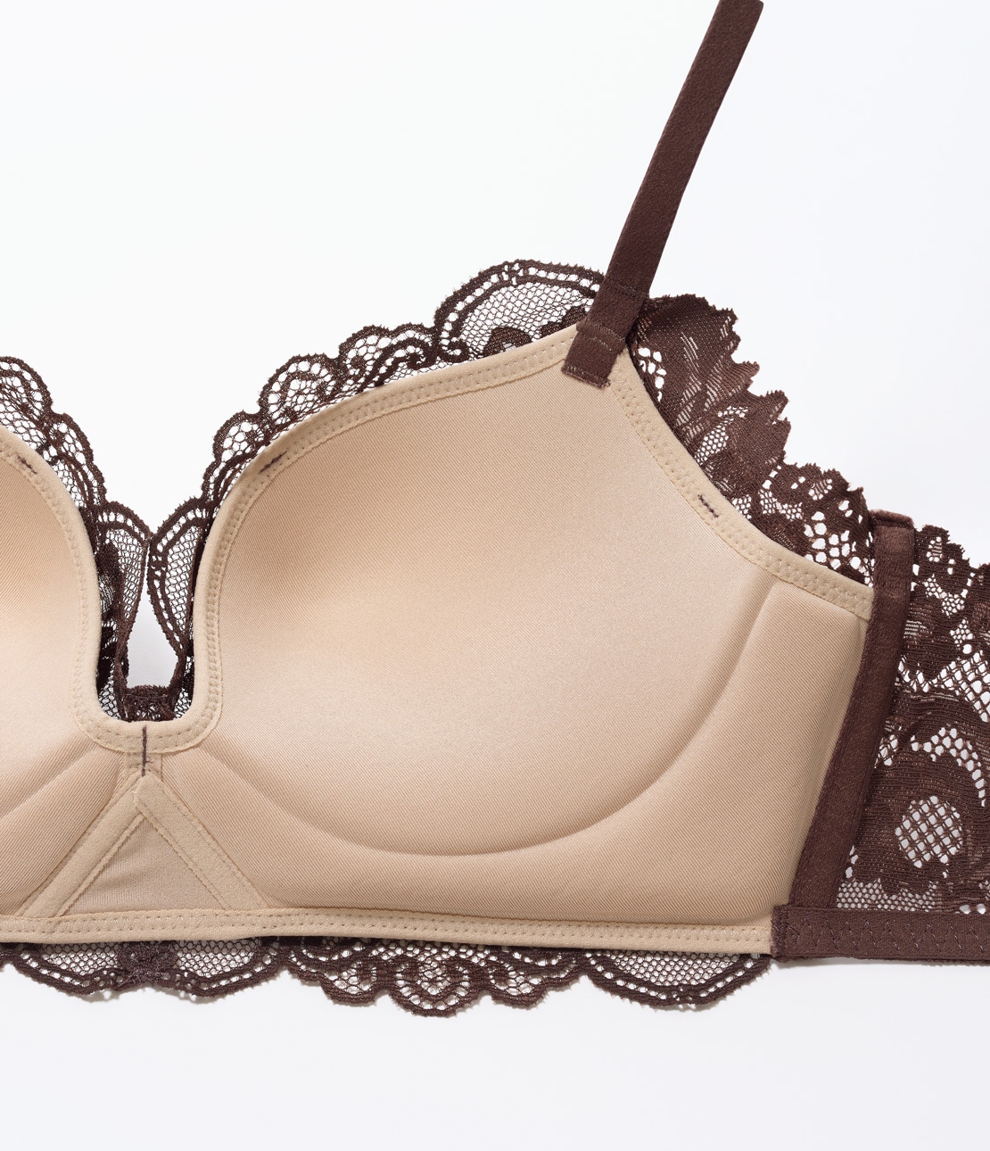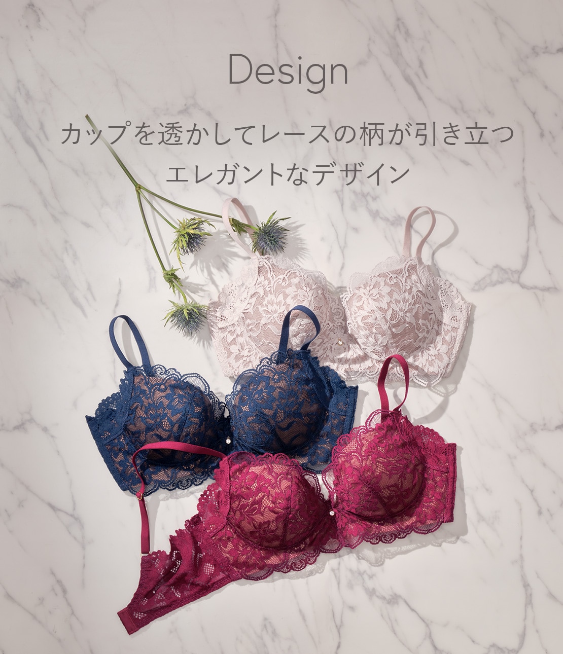 【ノンワイヤー】左右差・浮き・張りに対応。カップを透かしてレースの柄が引き立つ。