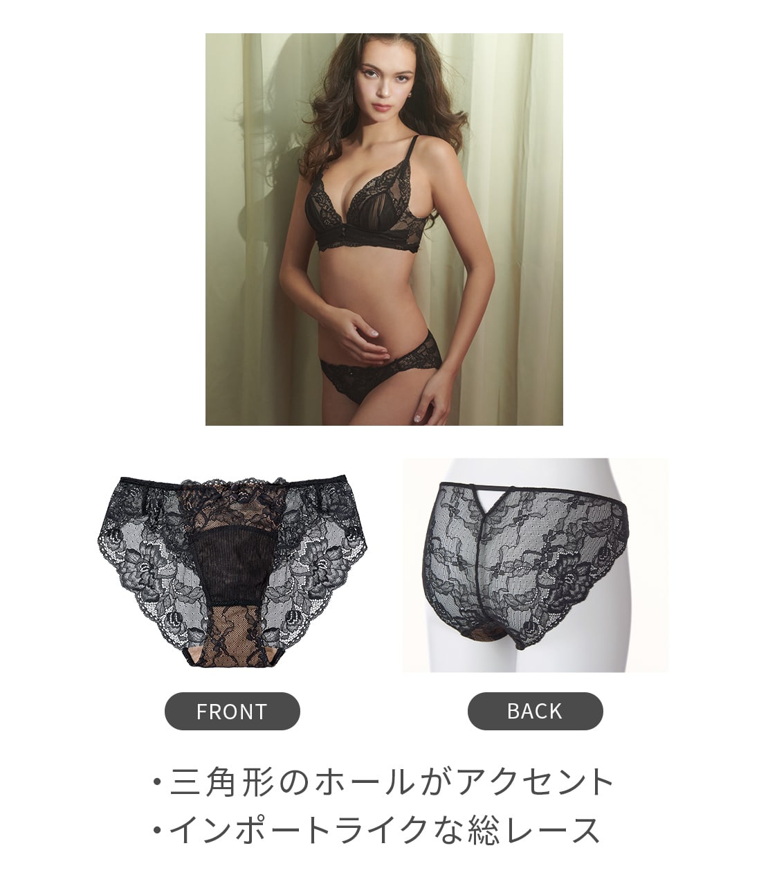 ・サイドベルトはストレッチレースにパワーネットを裏打ち。下辺はレースのスカラップで、段になりにくい。