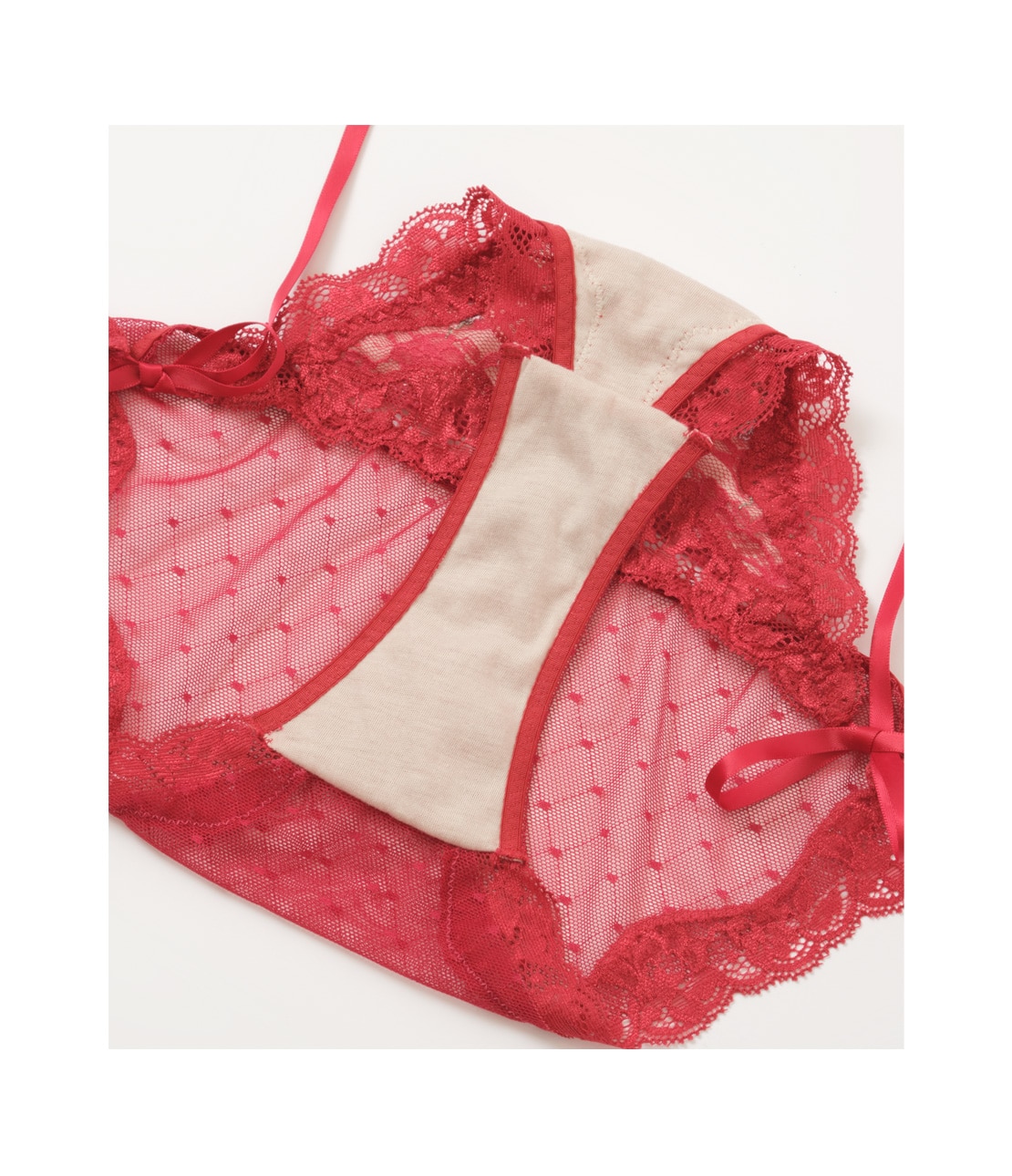 ・ウエスト・脚ぐりには細幅ストレッチレースをトリミング。