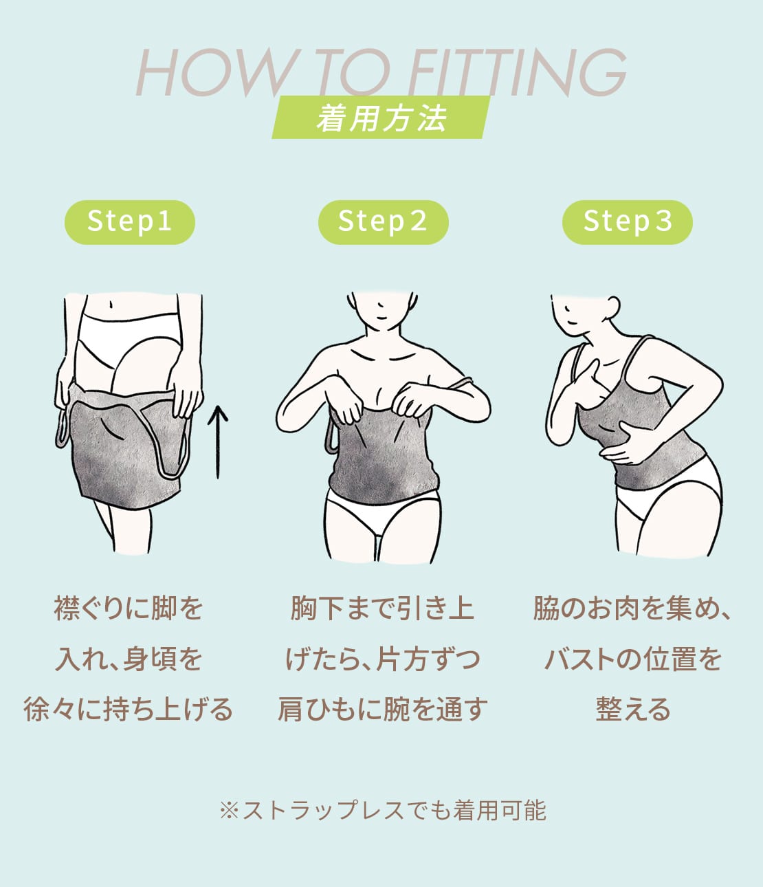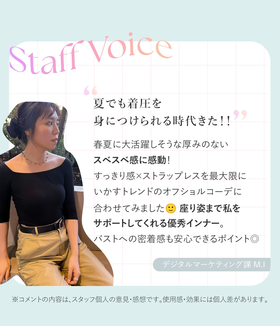 ・ストラップレスでも着用でき、オフショルダーや透ける素材の服にも合わせやすい。