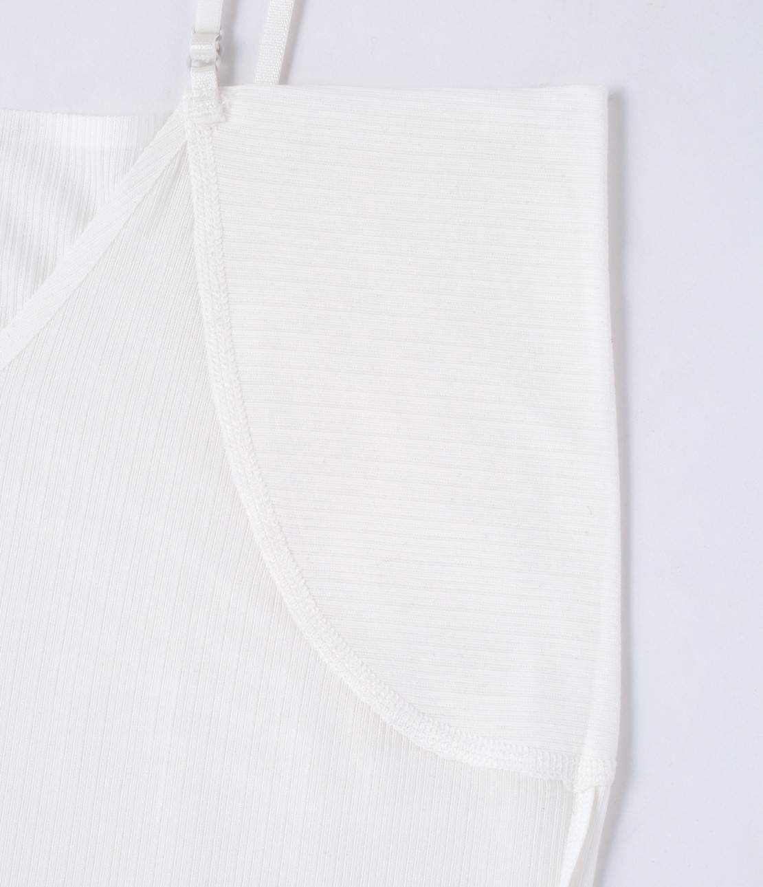 ・ブランドネームや品質表示をキャミソール部のバック左内側にプリント。ラベルの縫い付けがないため肌ざわりがスムーズ。