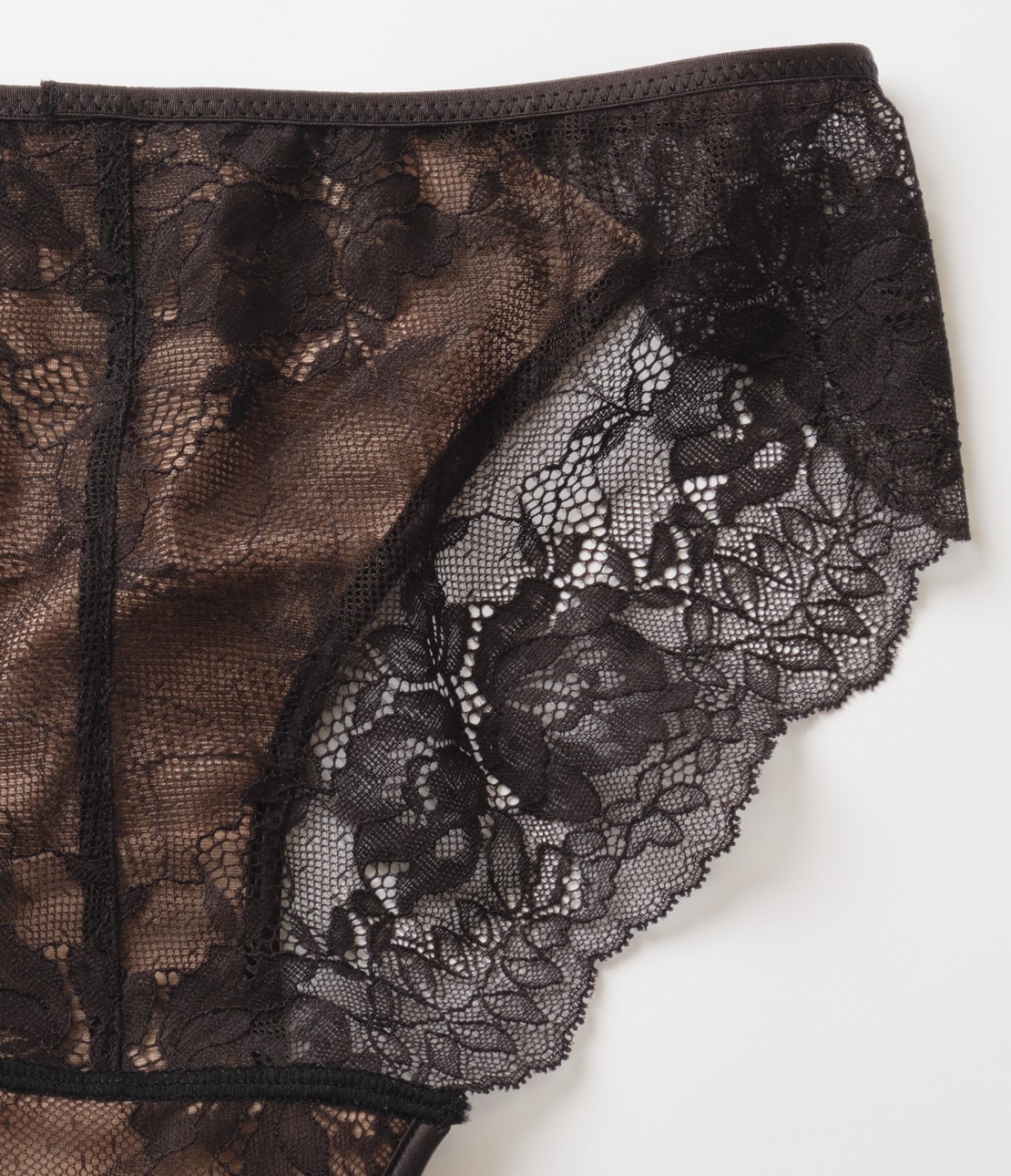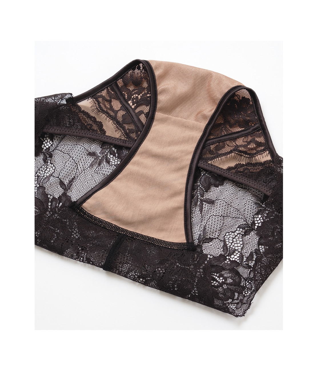 ・フロントとは異なる、伸びの良いストレッチレース一枚使いで透け感あり。