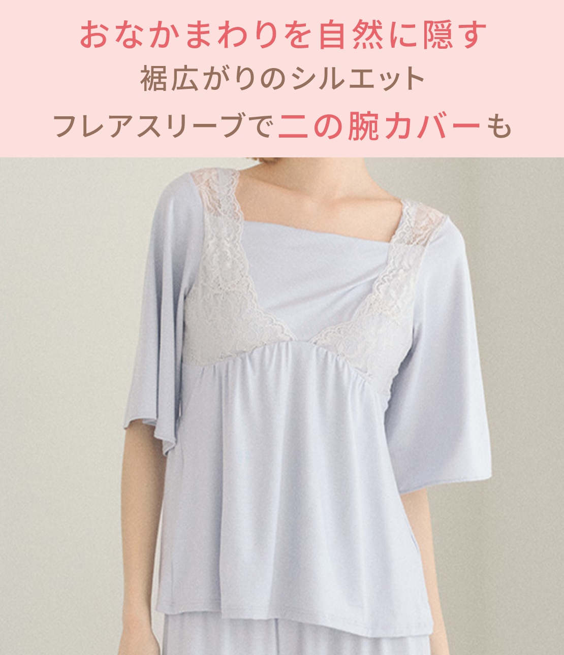 ・フレアスリーブが、二の腕を自然にカバー。