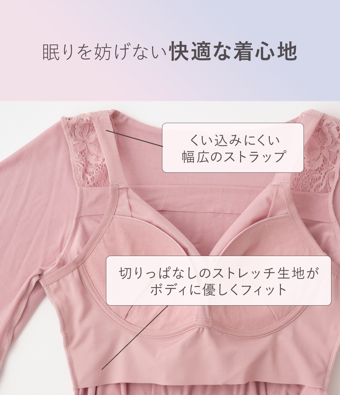 ・バスト部に、やさしい着け心地のナイトブラを内蔵。