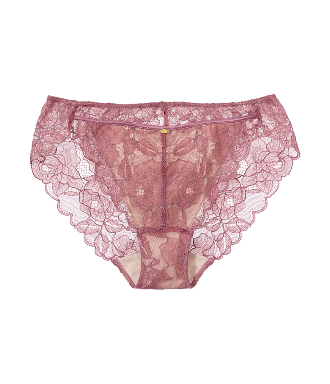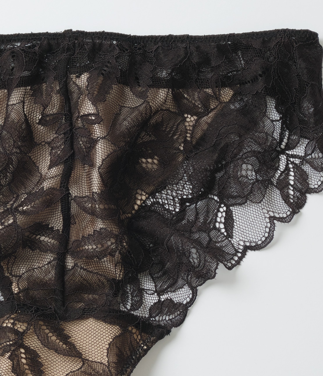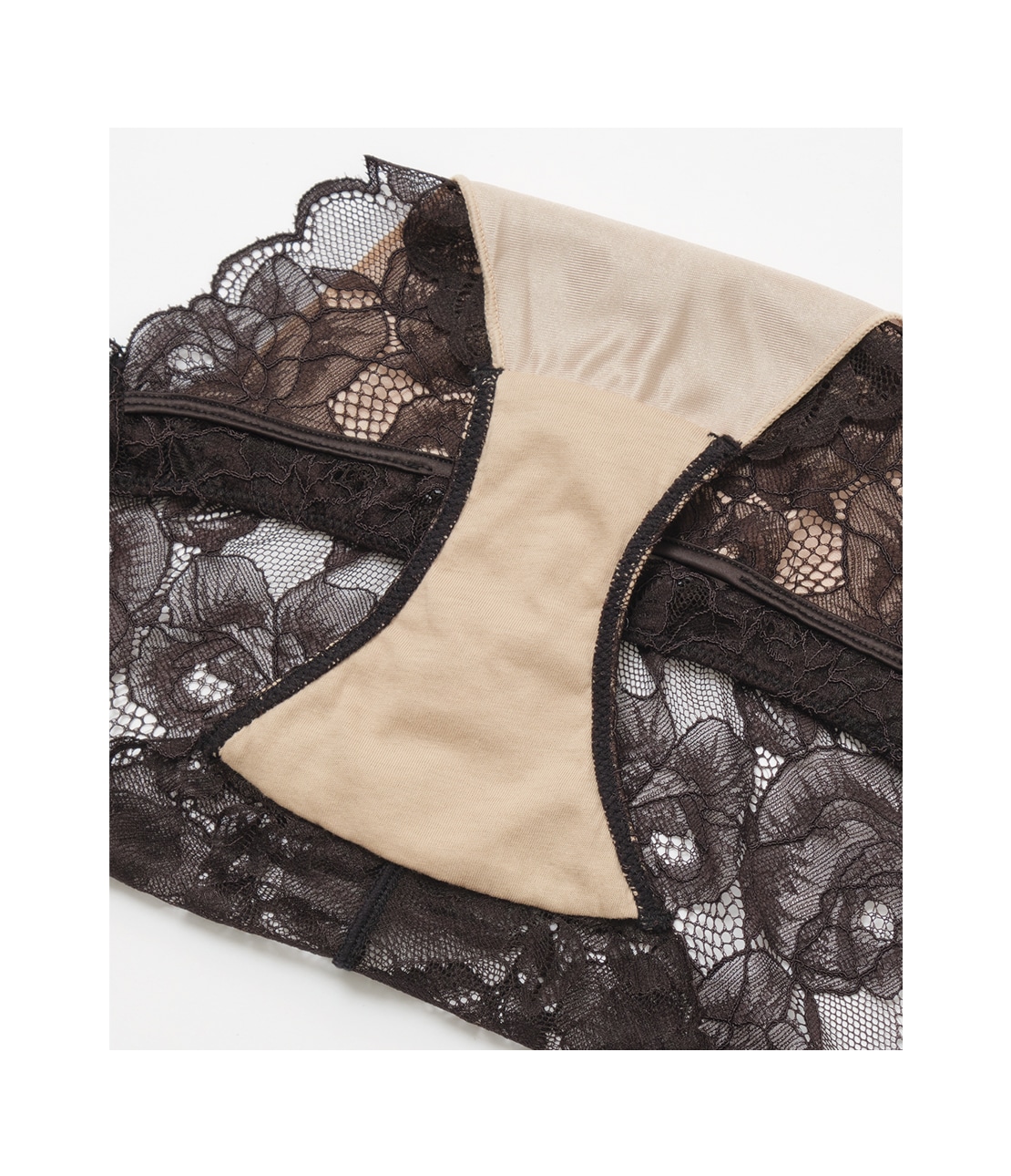 ・バックパネルはローズ柄ストレッチレース1枚仕立てで肌が透ける。