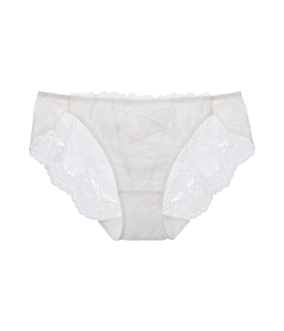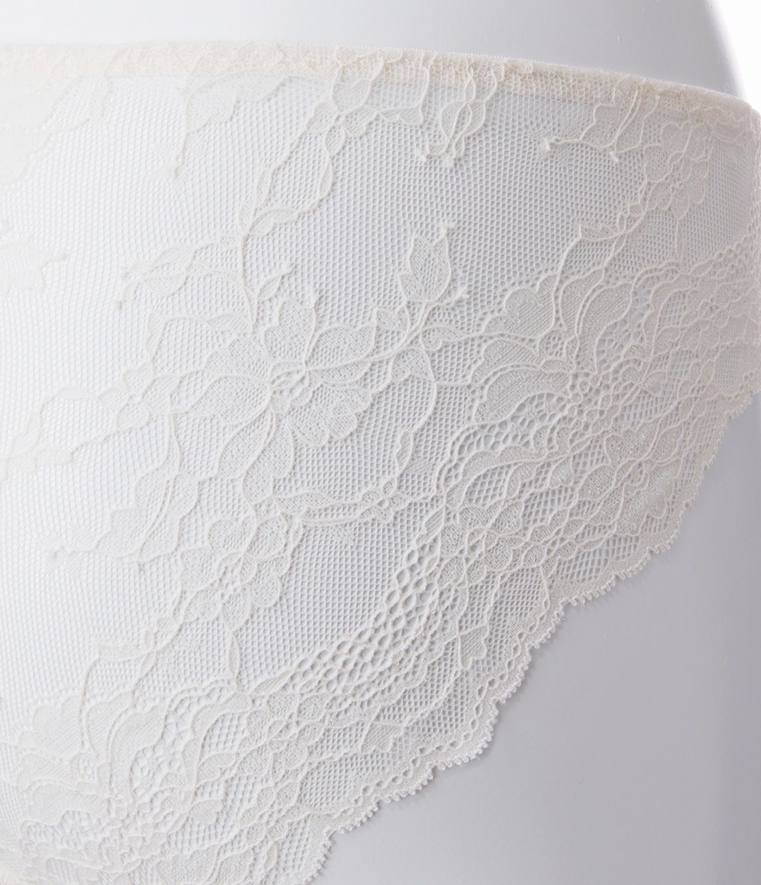 ・S~Lサイズは、ソフトなストレッチレース1枚仕立て。脚ぐりはゴムを使わないスカラップで、服にラインがひびきにくい。