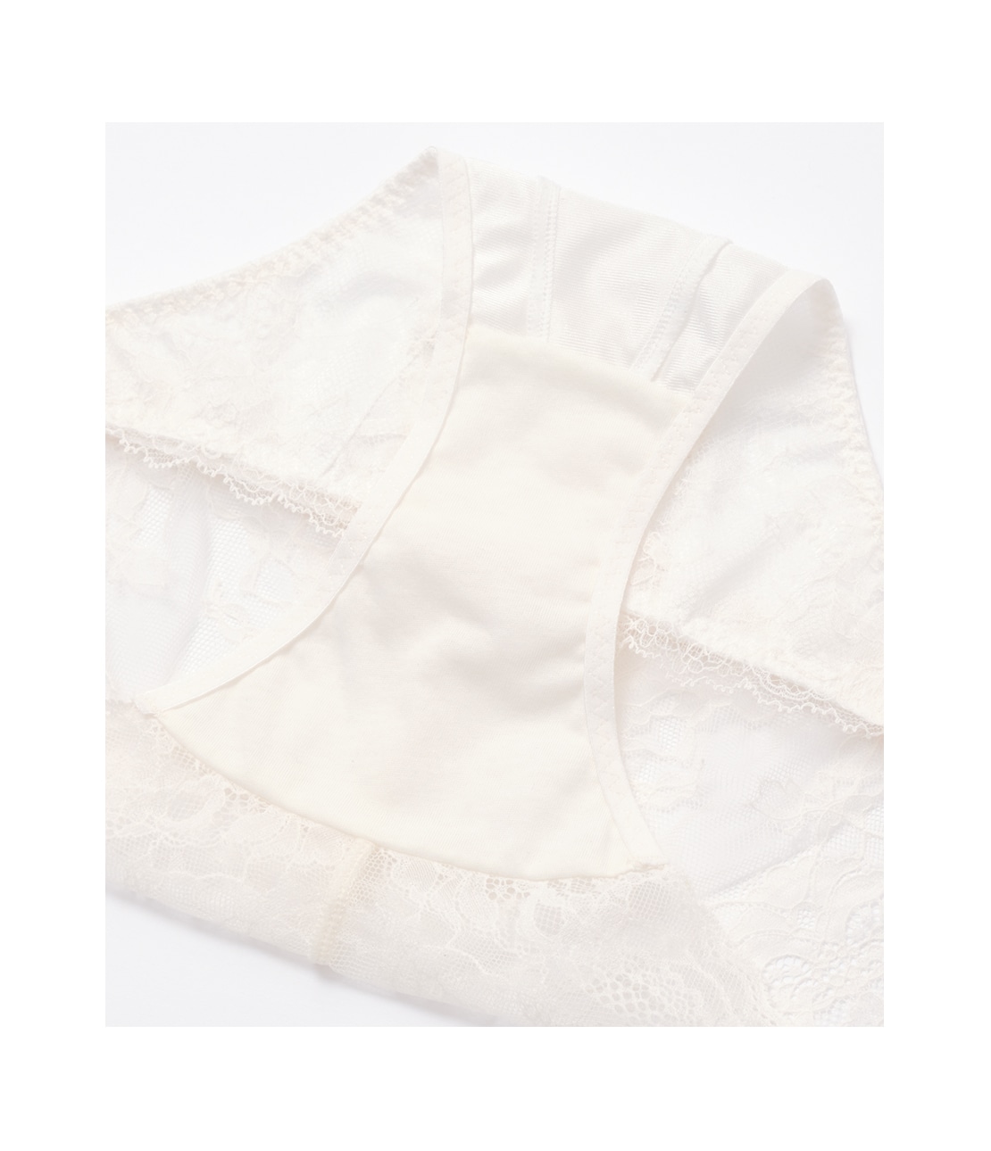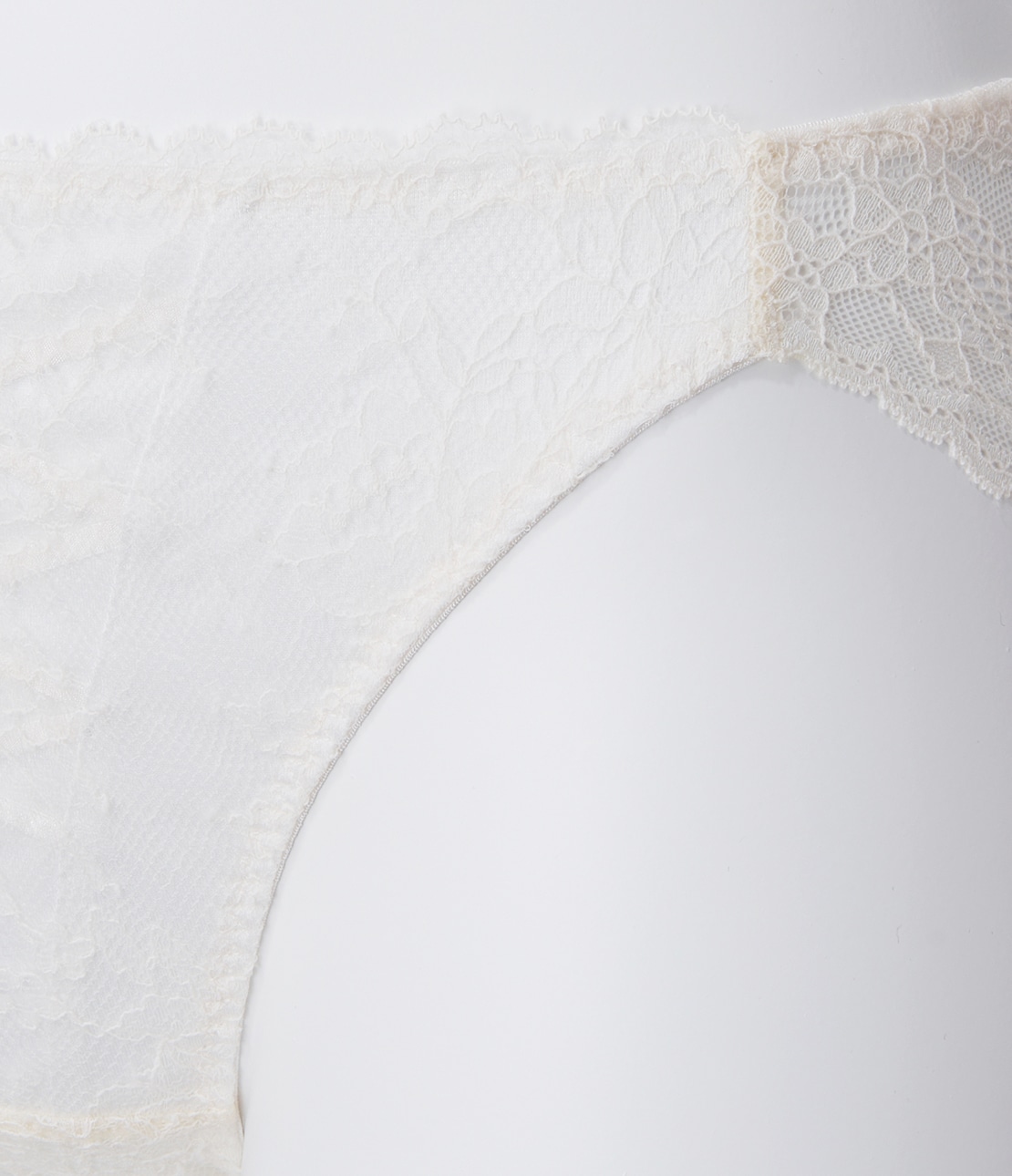 ・フロント全面が繊細なリジッド(伸びない)レースで、薄手生地を裏打ちして透け感をやわらげる。