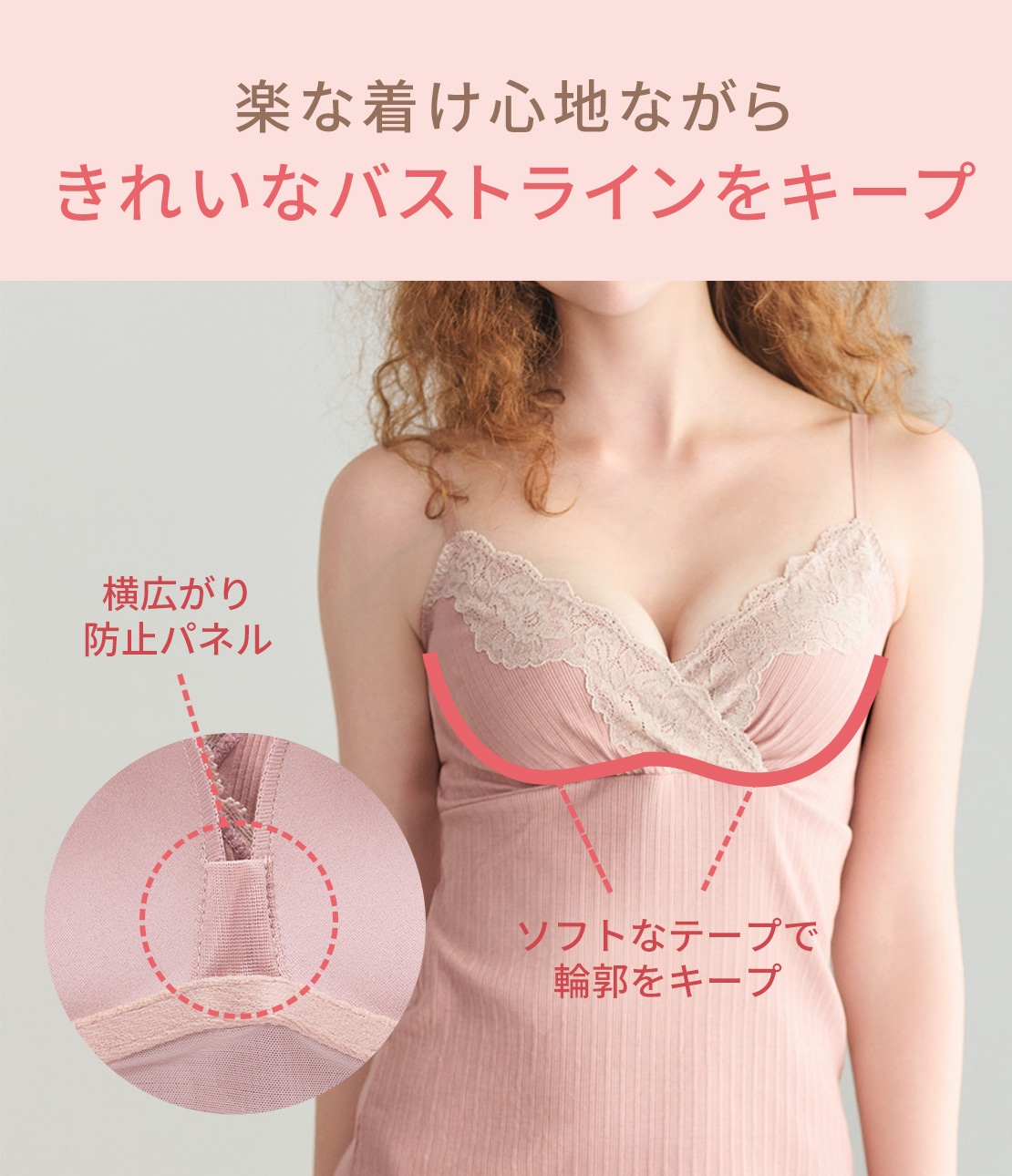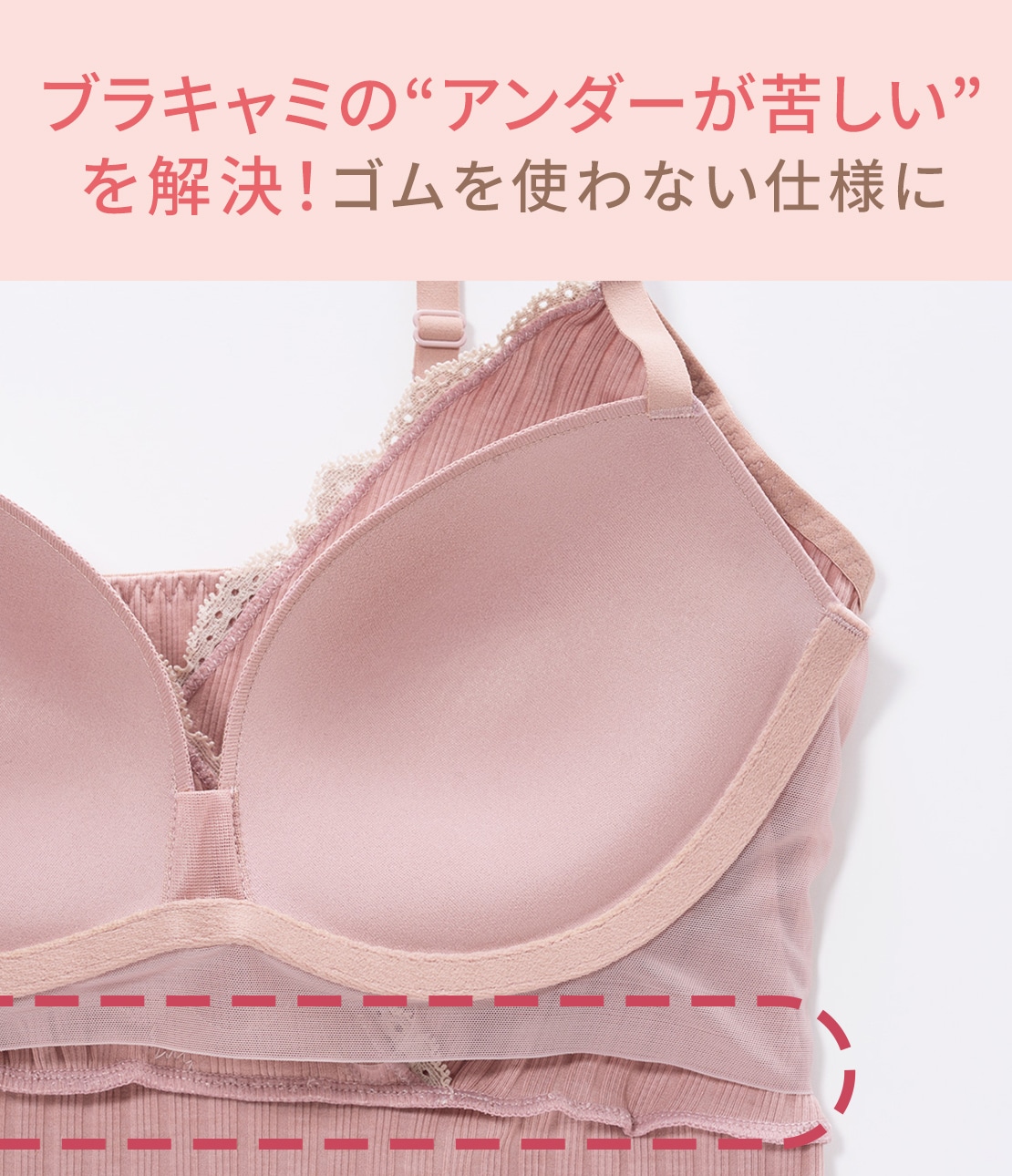 ・アンダーバストラインにゴムを使わず、ラクでやさしい着け心地。