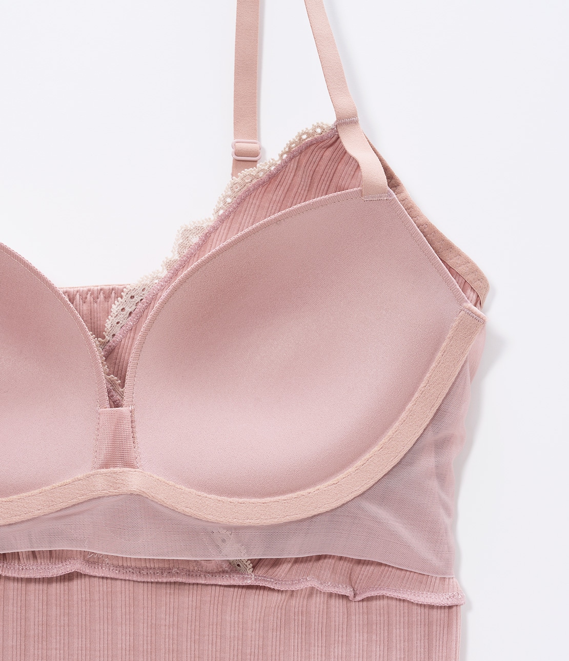 ・やや下厚のモールドカップブラ内蔵で、ナチュラルなバストラインをメイク。