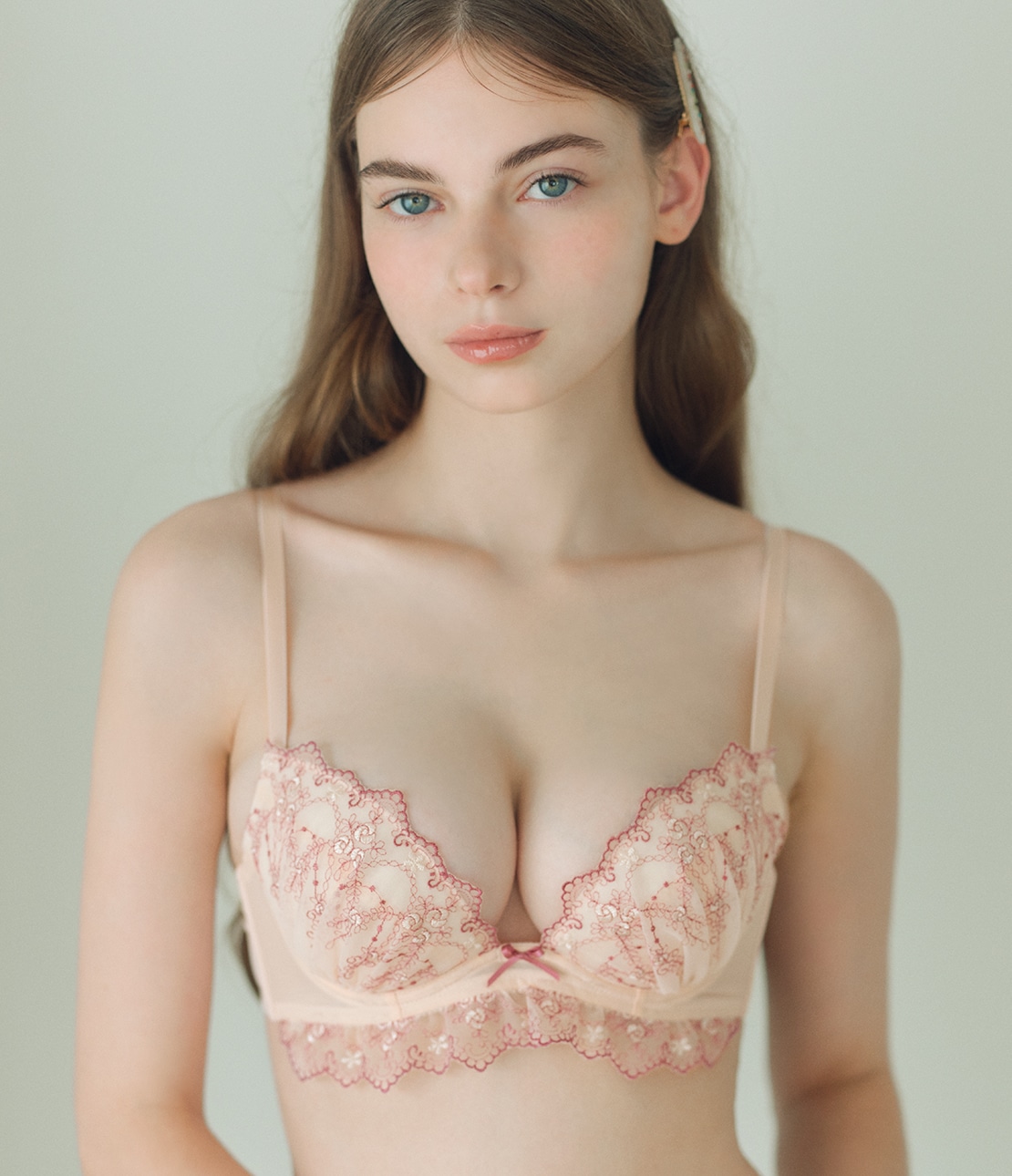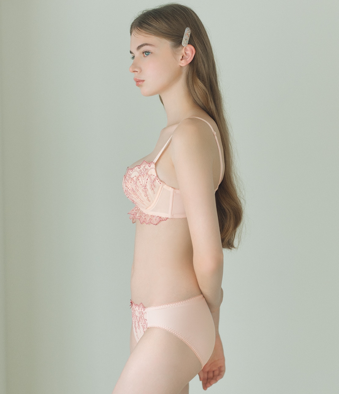 ・可愛らしいアーチ柄の配色刺しゅうレースで、ふんわりとカップをカバー