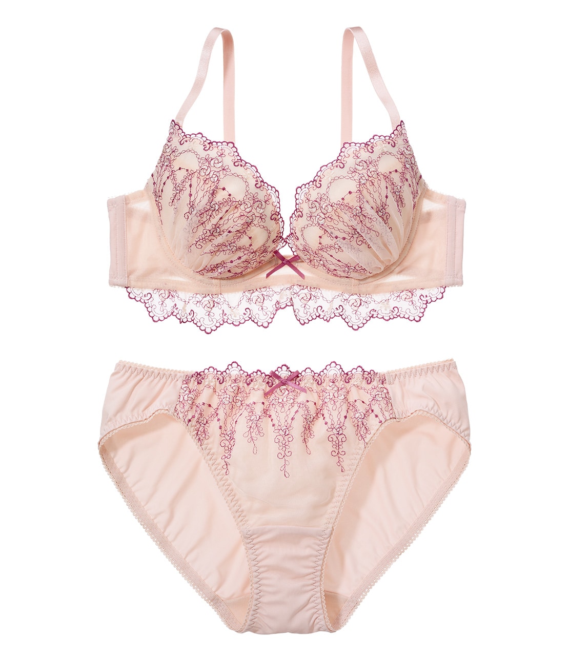 ボリュームアップして、ぐっと谷間寄せ。配色レースが贅沢なブラ&ショーツセット。
