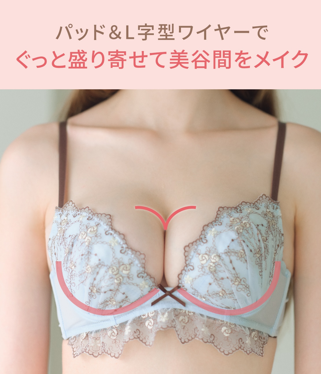 ・L字型ワイヤーが脇からお肉を集めて中央に寄せ、きれいな谷間をメイク。
