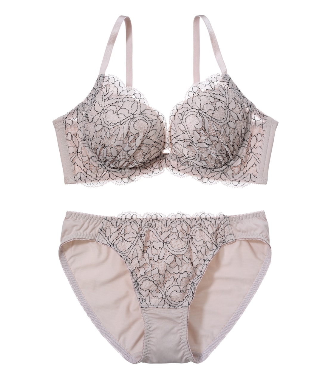 ・高級感あるツートーンレース使いの脇高ブラ&ショーツが、セットでお手頃価格。
