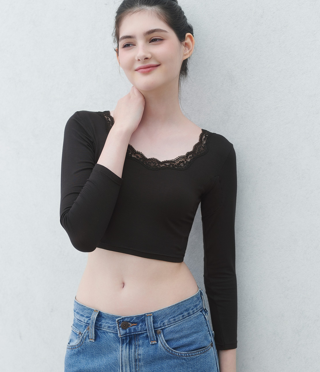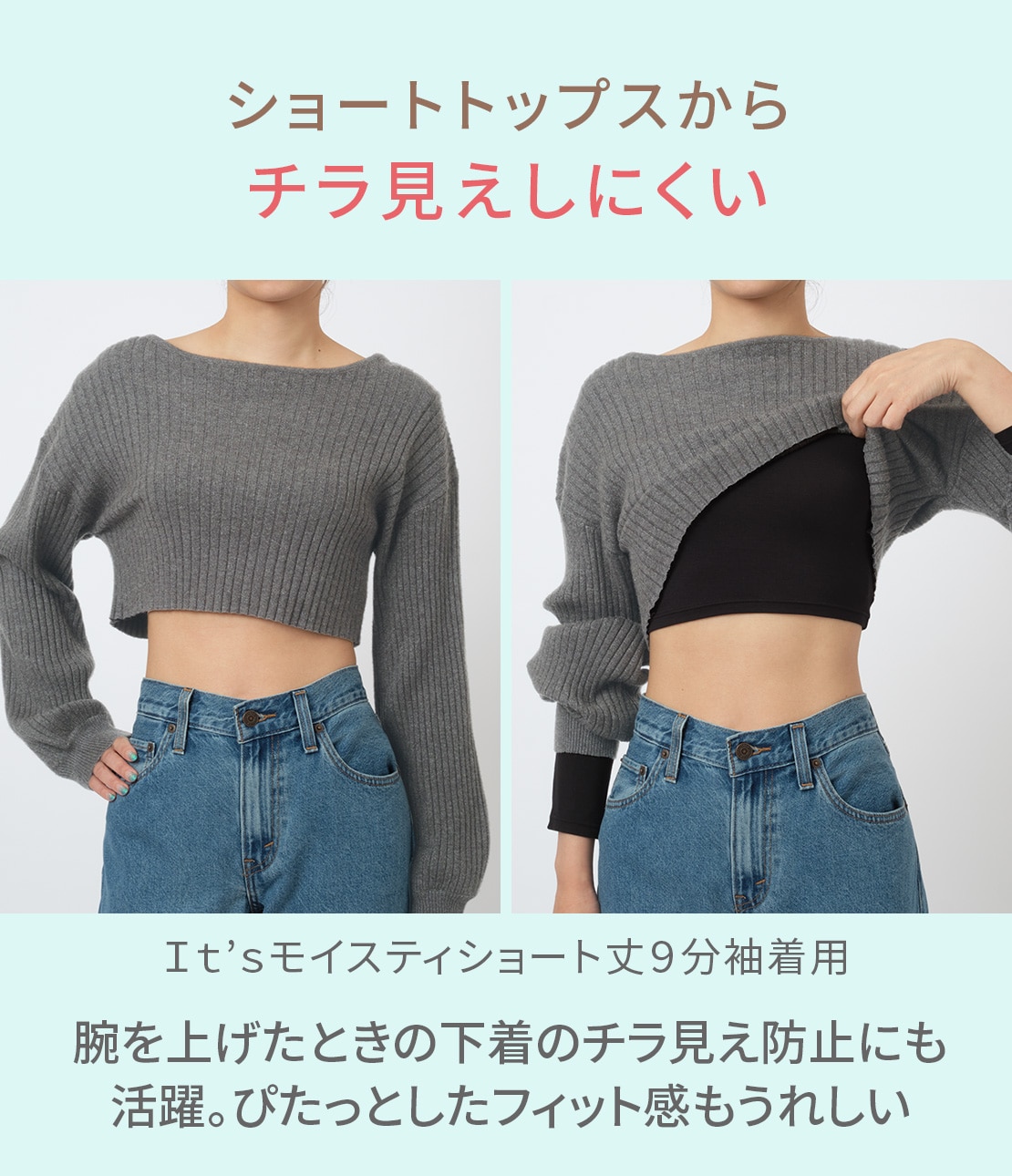 ショート丈が登場!流行のクロップトトップスの冷え対策に。ワキ汗にも対応。