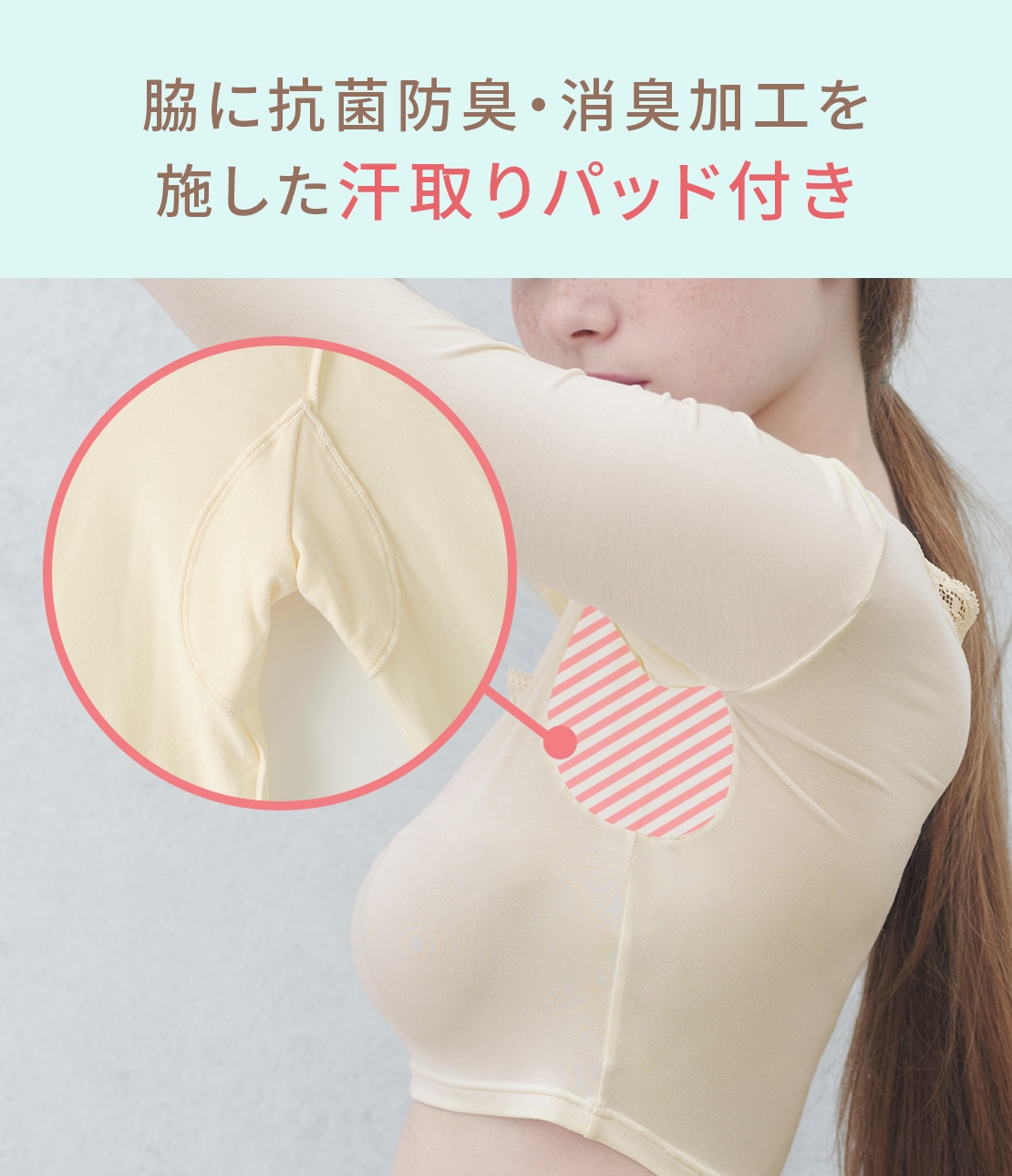 - ※生地:程よい伸縮性あり(全方向)、保湿加工、ワキパッドのみ抗菌防臭・消臭加工