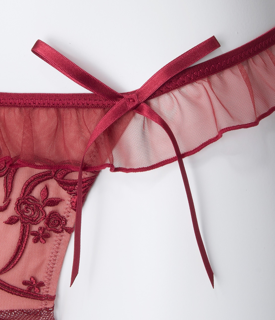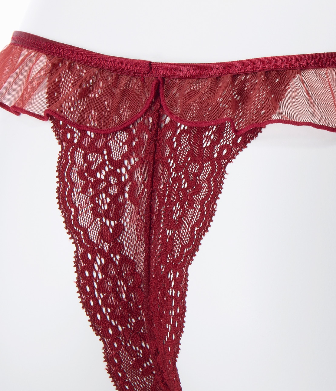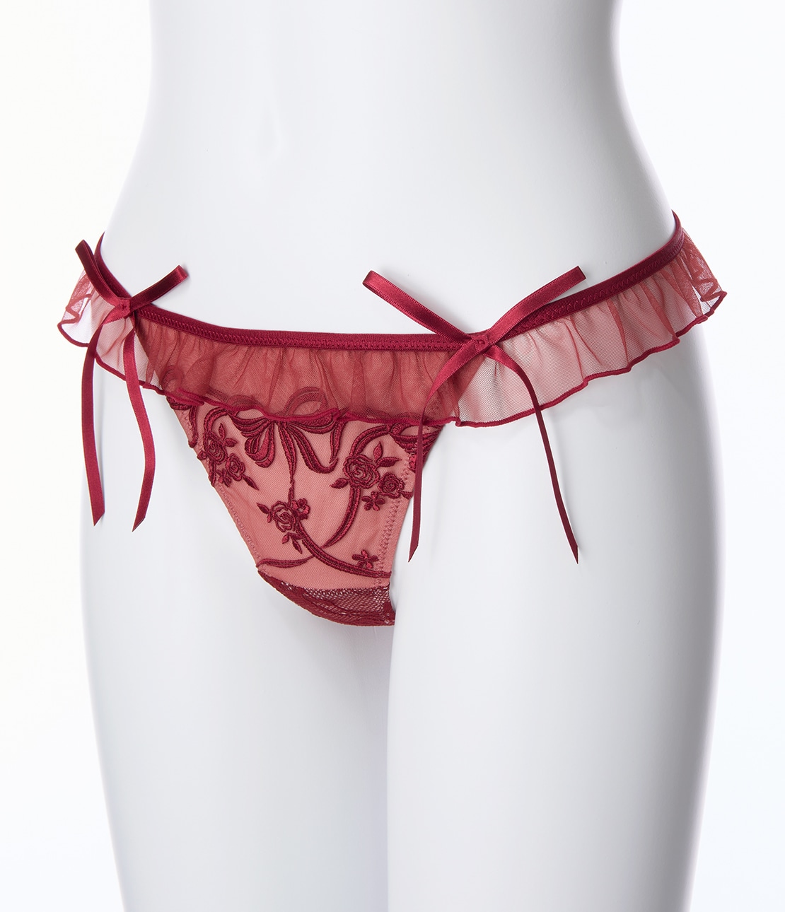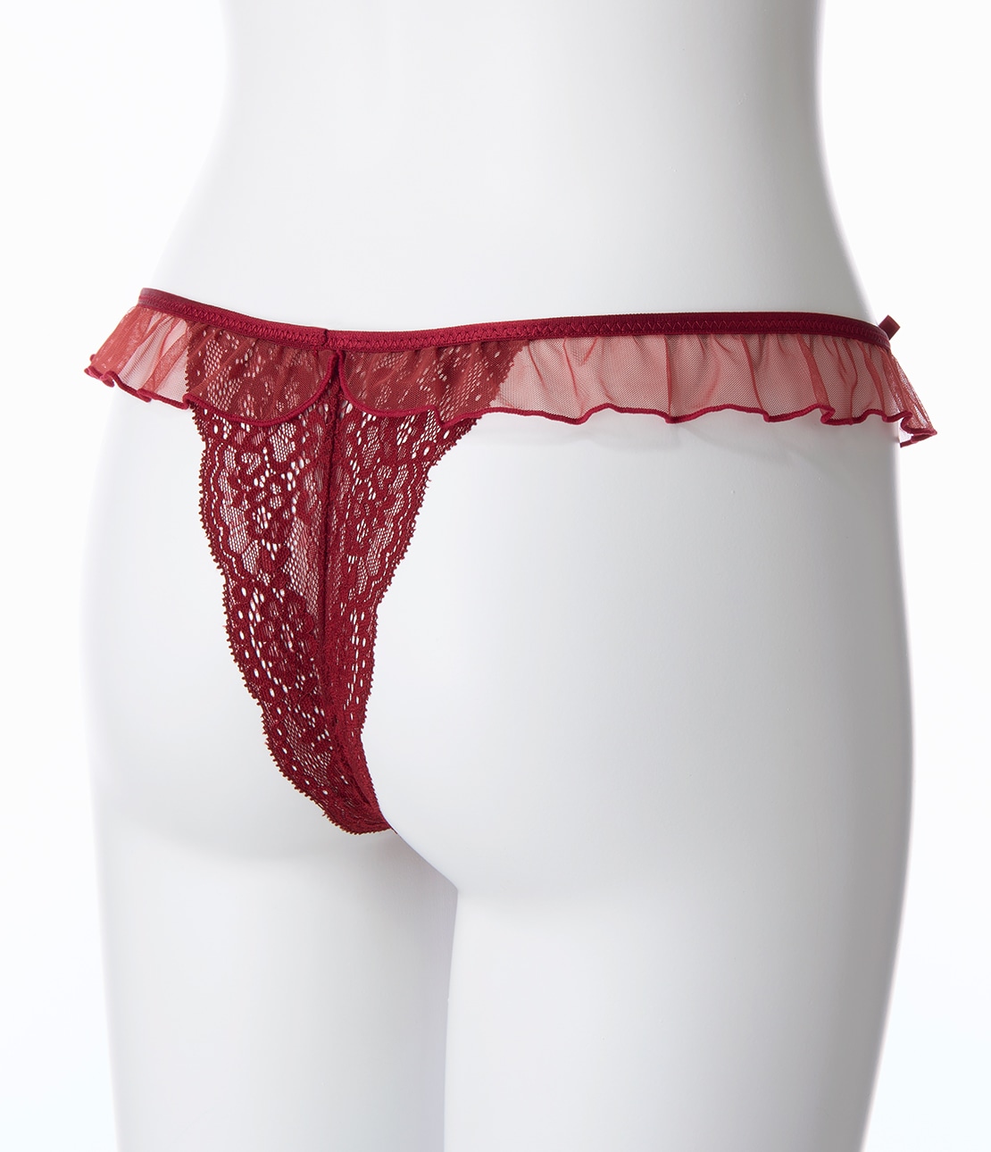 【Tバック】シアーなフリルがロマンティックを高める。ガーターベルトとも相性抜群。