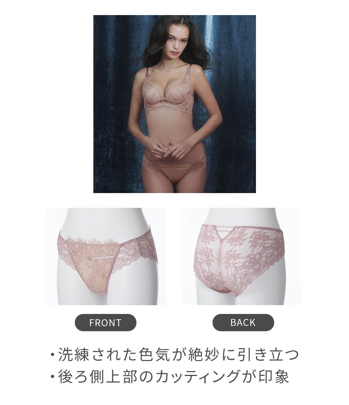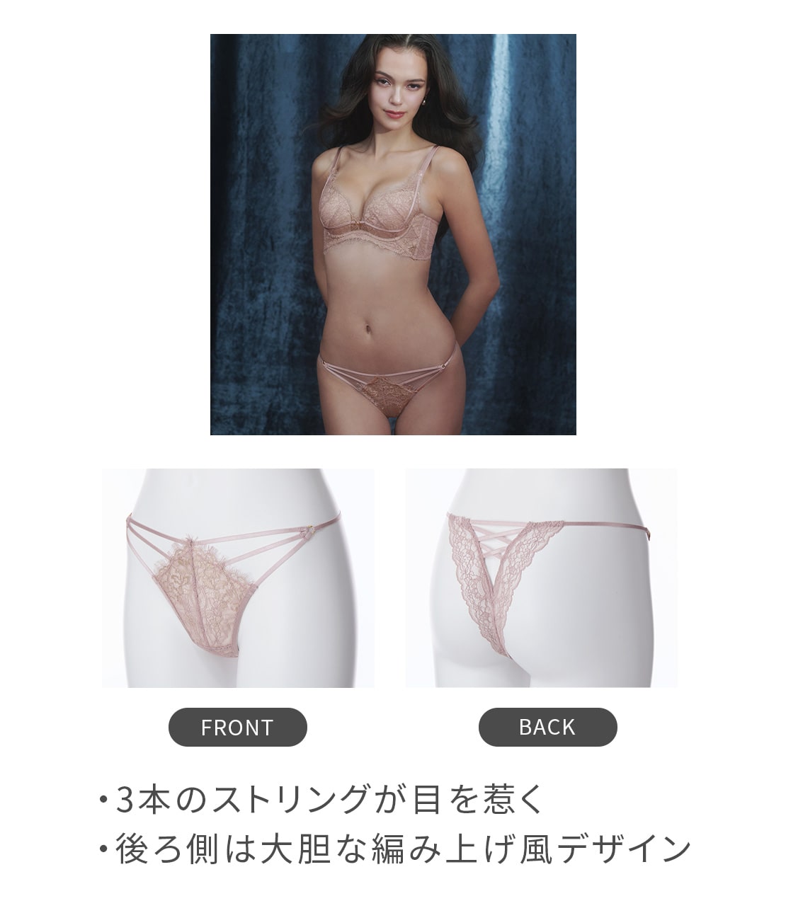 ・カップ下側&脇側に華奢なストリングを交差させた、大人の色香漂うインポートライクなデザイン