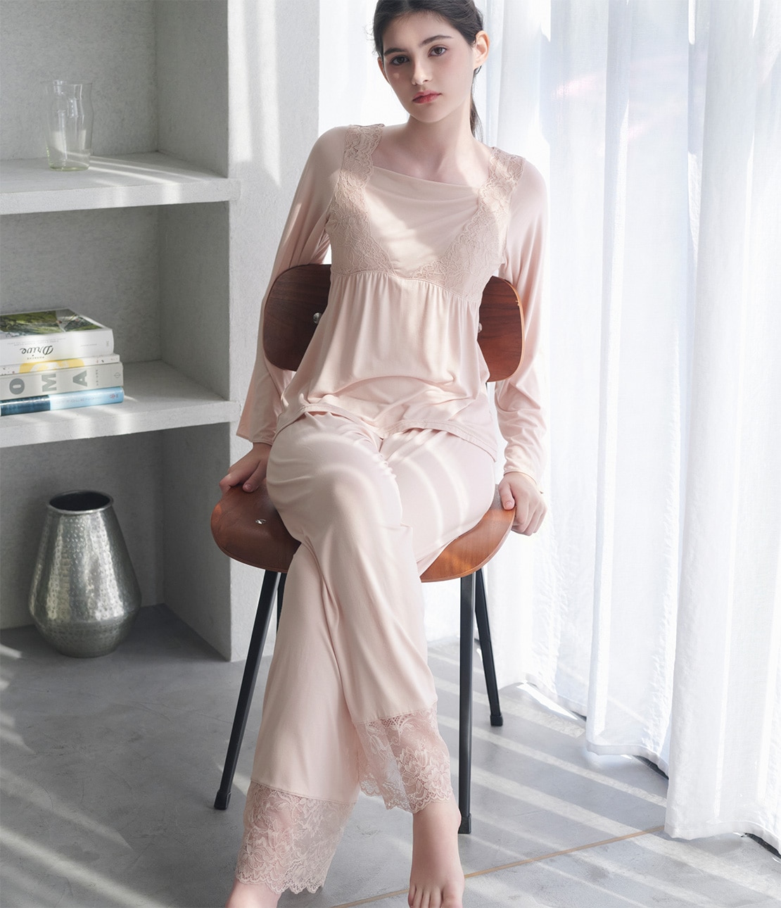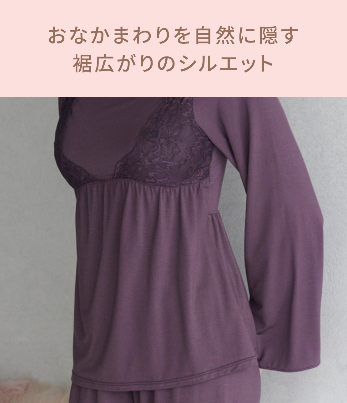 ・人気の「ナイトブラ内蔵HARAマキパジャマ」の長袖バージョン。秋~春まで長く着られる。